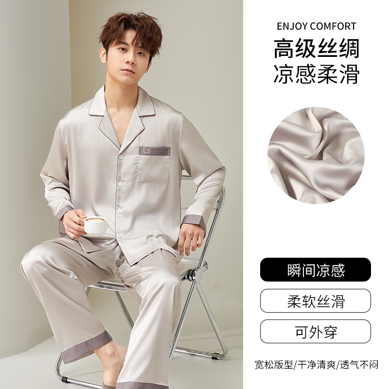 [최소] 봄 · 가을 새 집옷 남성용 상쾌한 실키아이스실크 남성용 파자마 고급 감각 남자친구스토어 가기