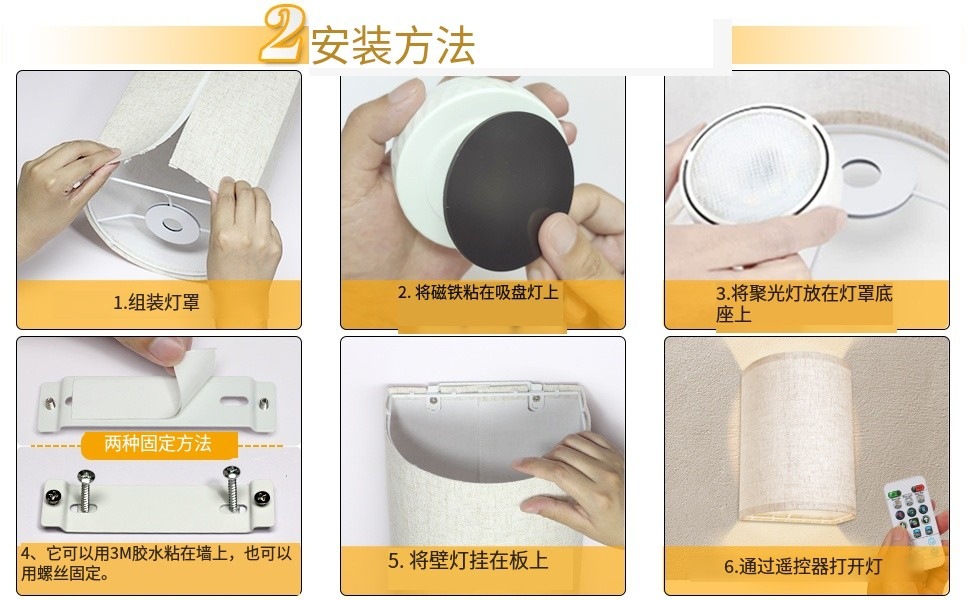 국경을 넘는 벽등 실내 침실 천 커버 RGB 심플 배터리 분위기등 호텔 무배선 침대 옆 LED등스토어 가기