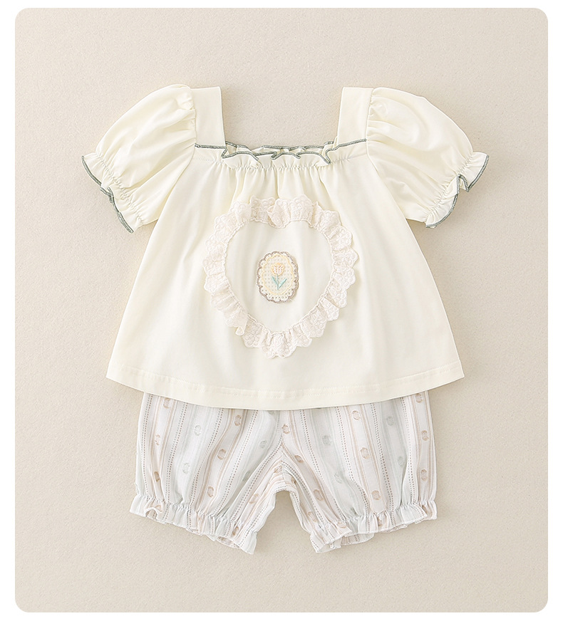 아기 소녀의 여름 달콤한 신선한 스타일 반팔 세트 2025 새로운 스타일 소녀의 외부 착용 클래스 순수한면 어린이 옷