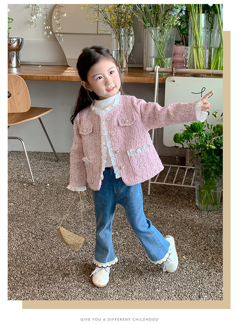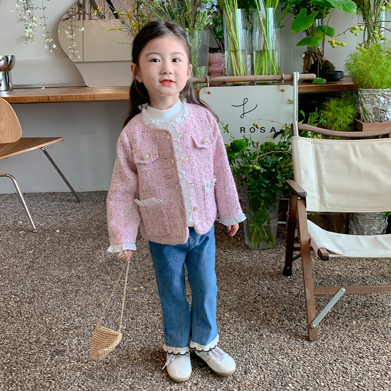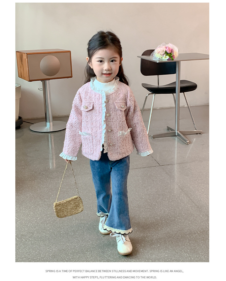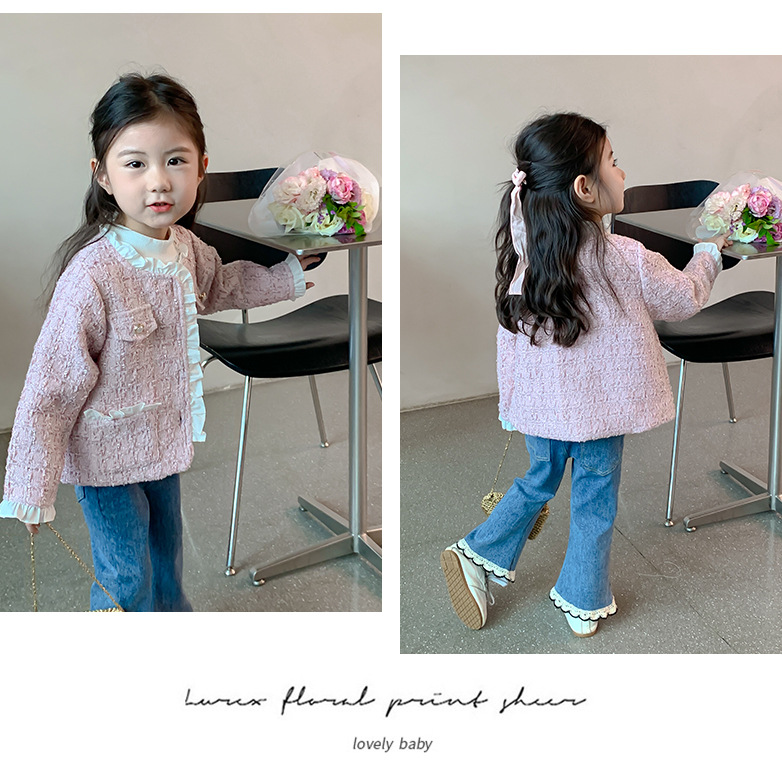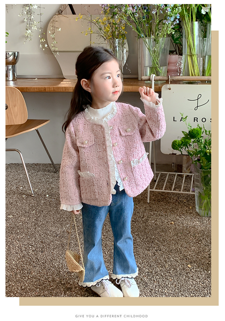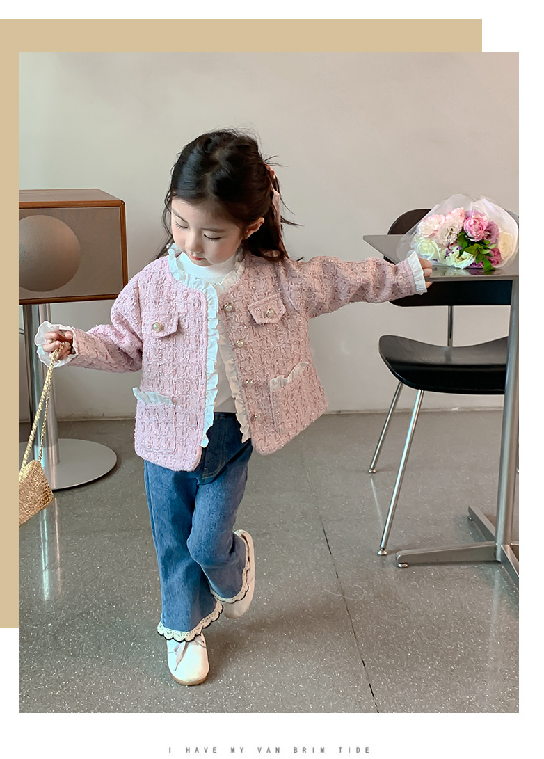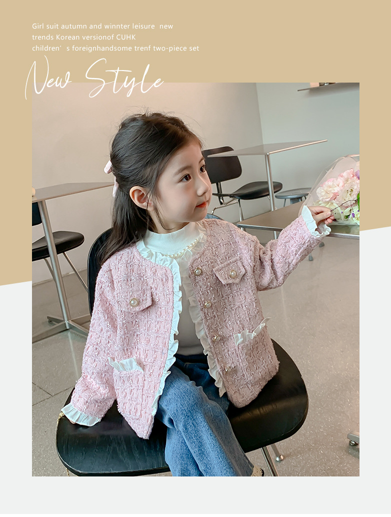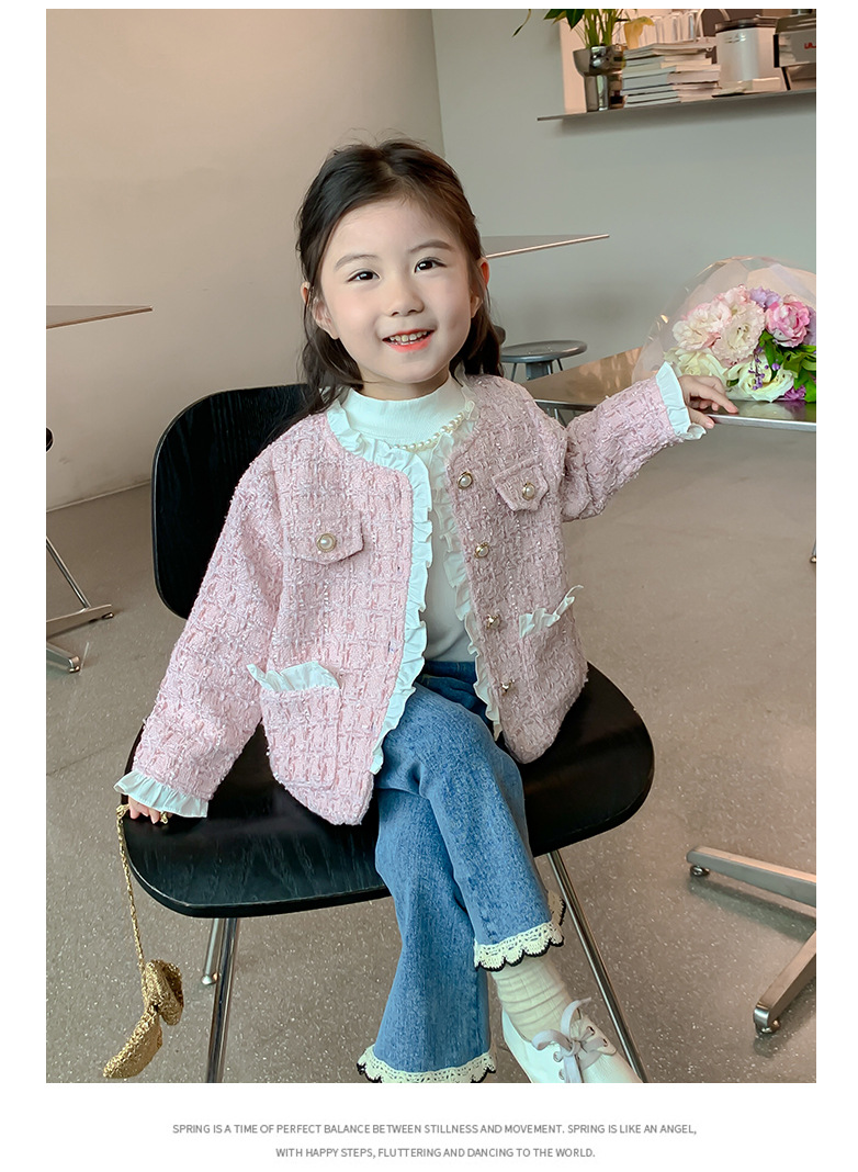 소녀 코트 봄과 가을 2025 새로운 어린이 봄 샤넬 스타일 탑 어린이 옷 봄 소녀의 옷