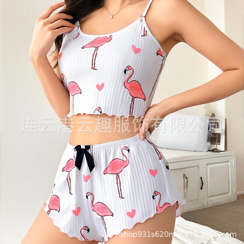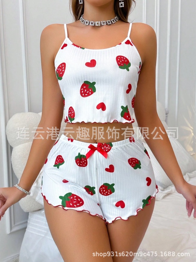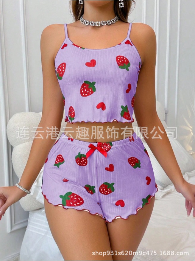 국경 간 핫 셀러 여성용 홈 의류 사랑 슬링 반바지 캐주얼 핏 스트립 의류 유럽과 미국 여성 파자마스토어 가기