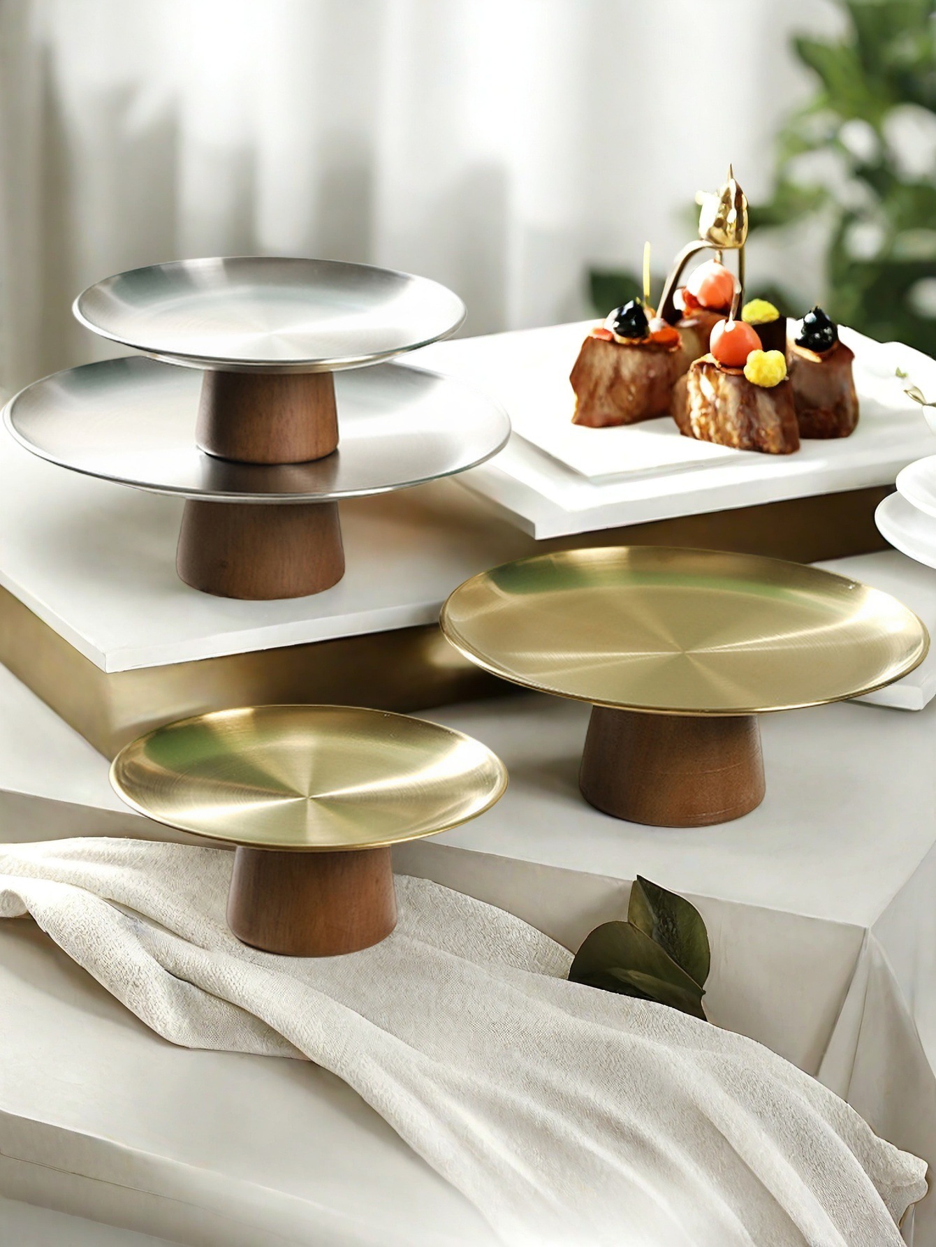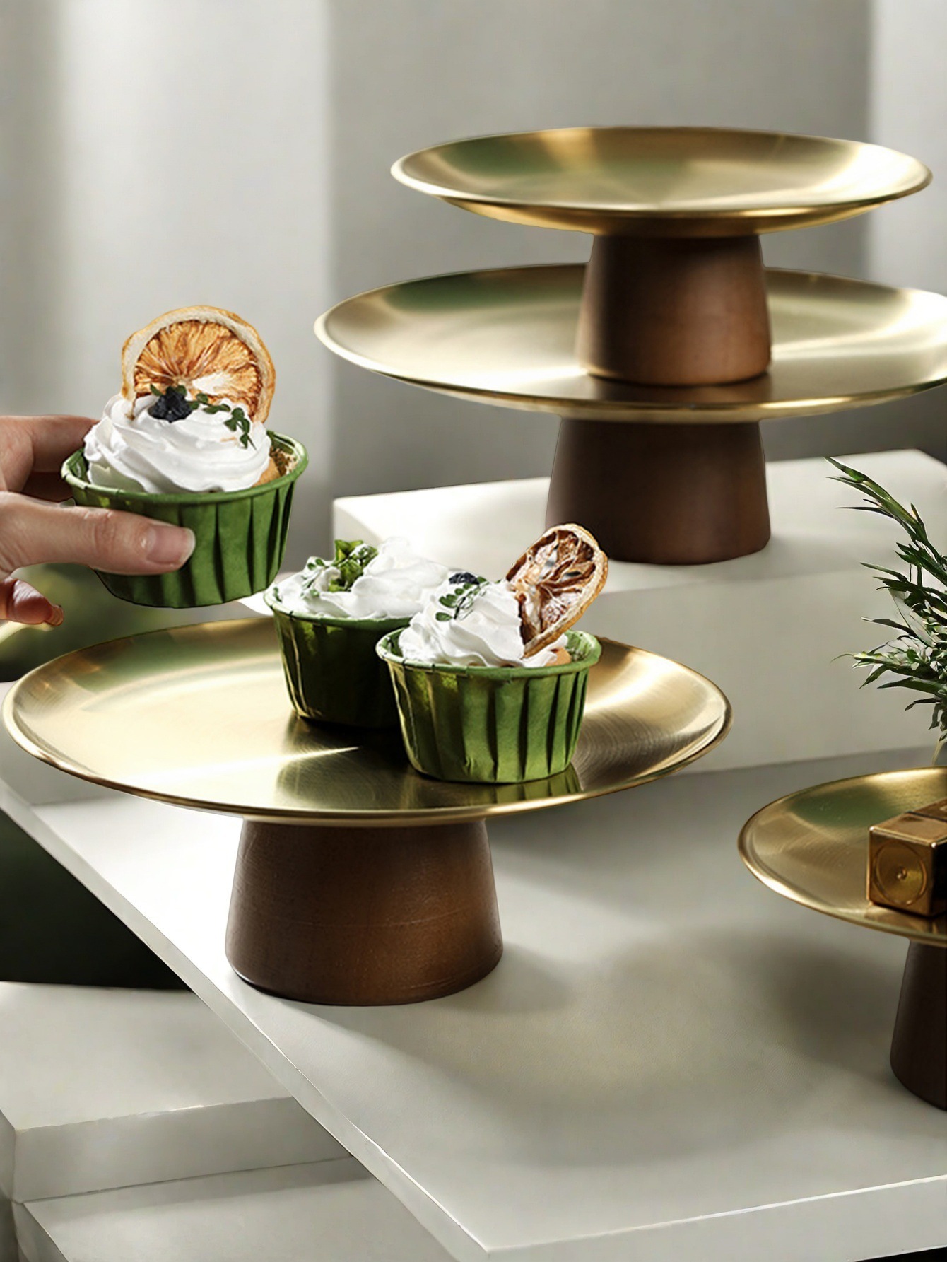 • 황금 접시 대, 중, 소 - 단단한 나무 베이스