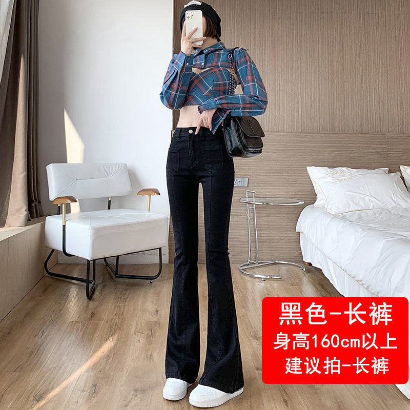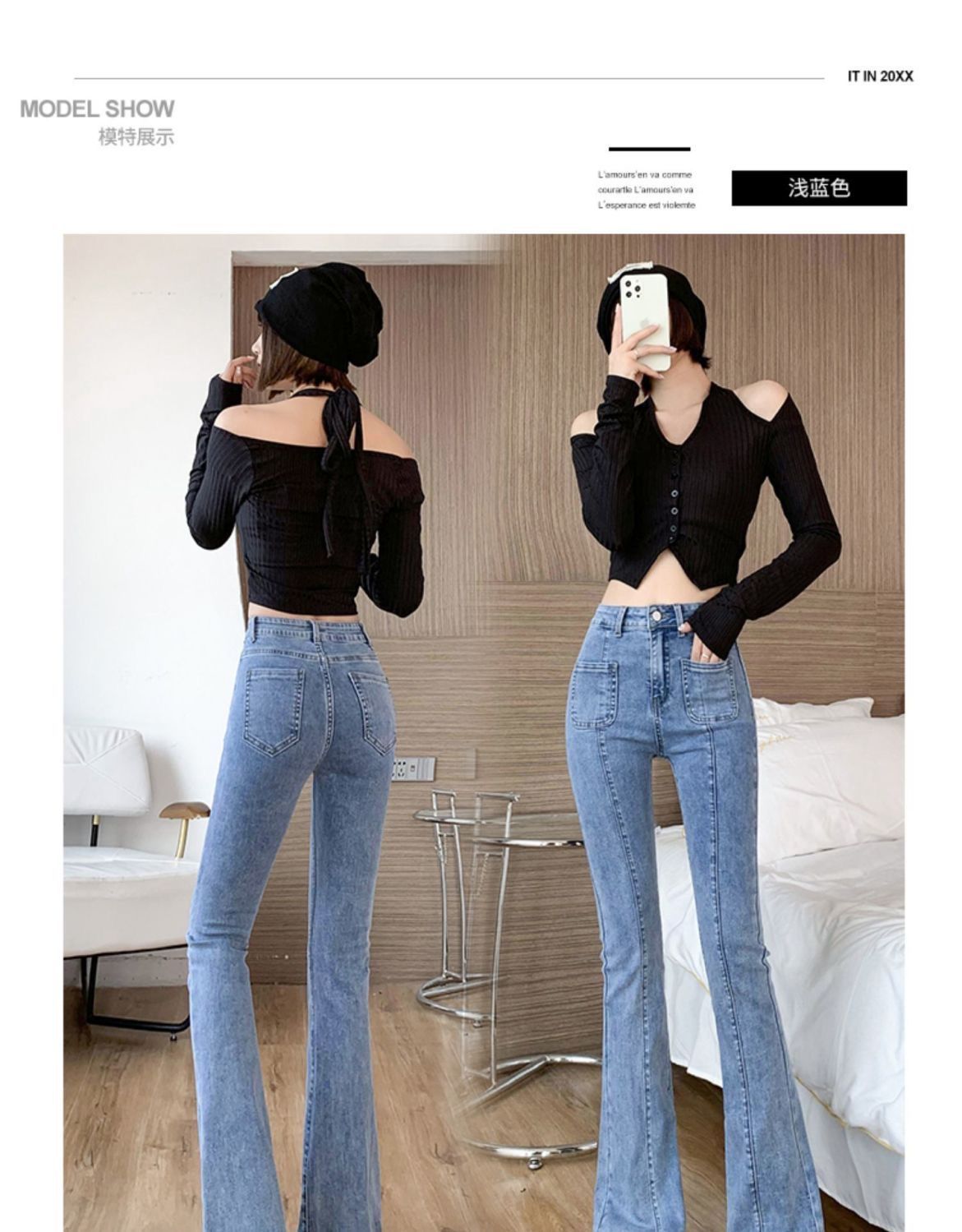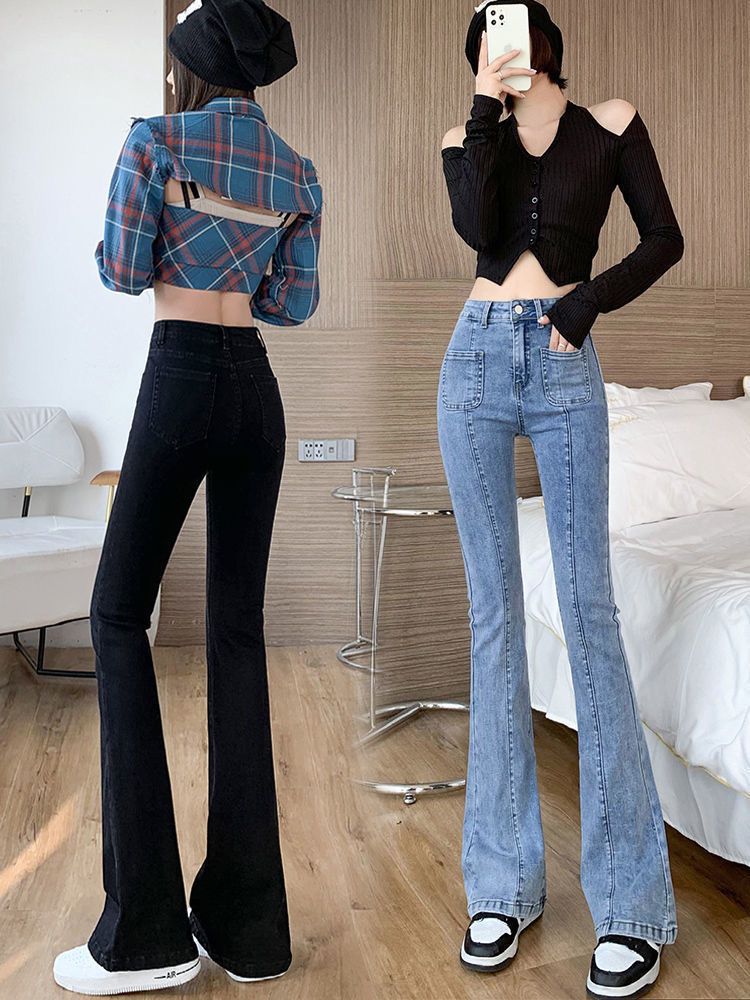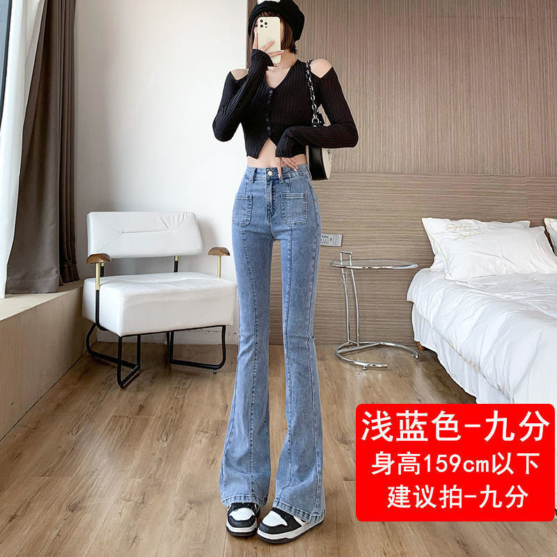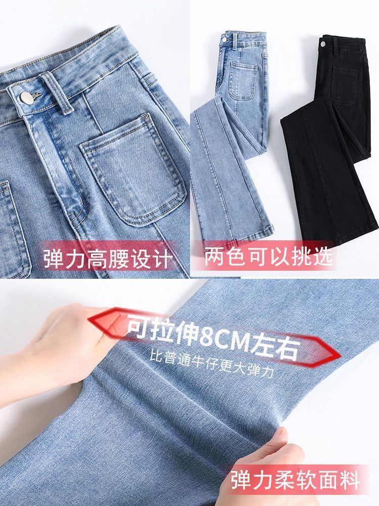 밝은 색의 마이크로 블라 드 청바지 여성의 높은 허리 2025 가을 새로운 스트레치 플라 팬츠 타이트 넓은 다리 슬림 바지스토어 가기