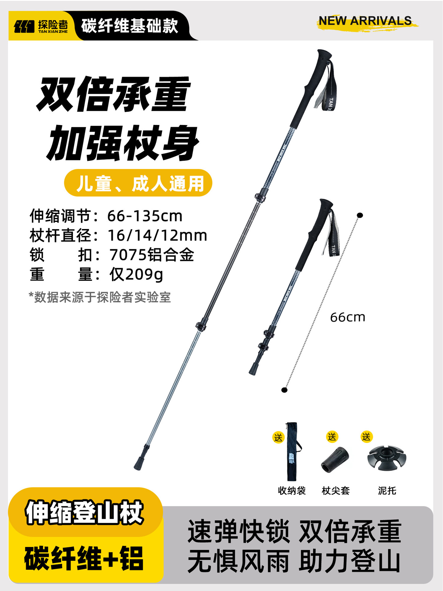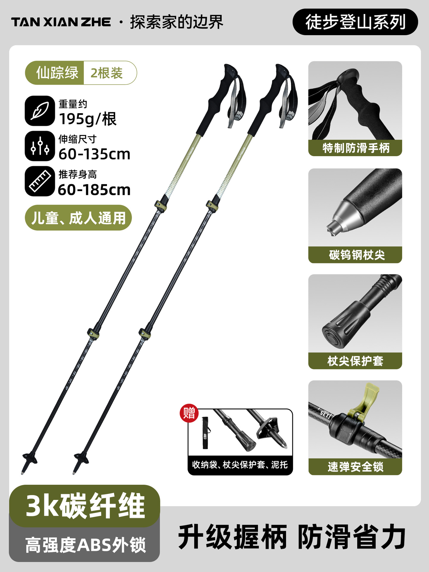 • 【❤❤2개 팩] 카본 컬러 [탄소 섬유 접이식 트레킹 폴] 탄소강 합금 폴 팁