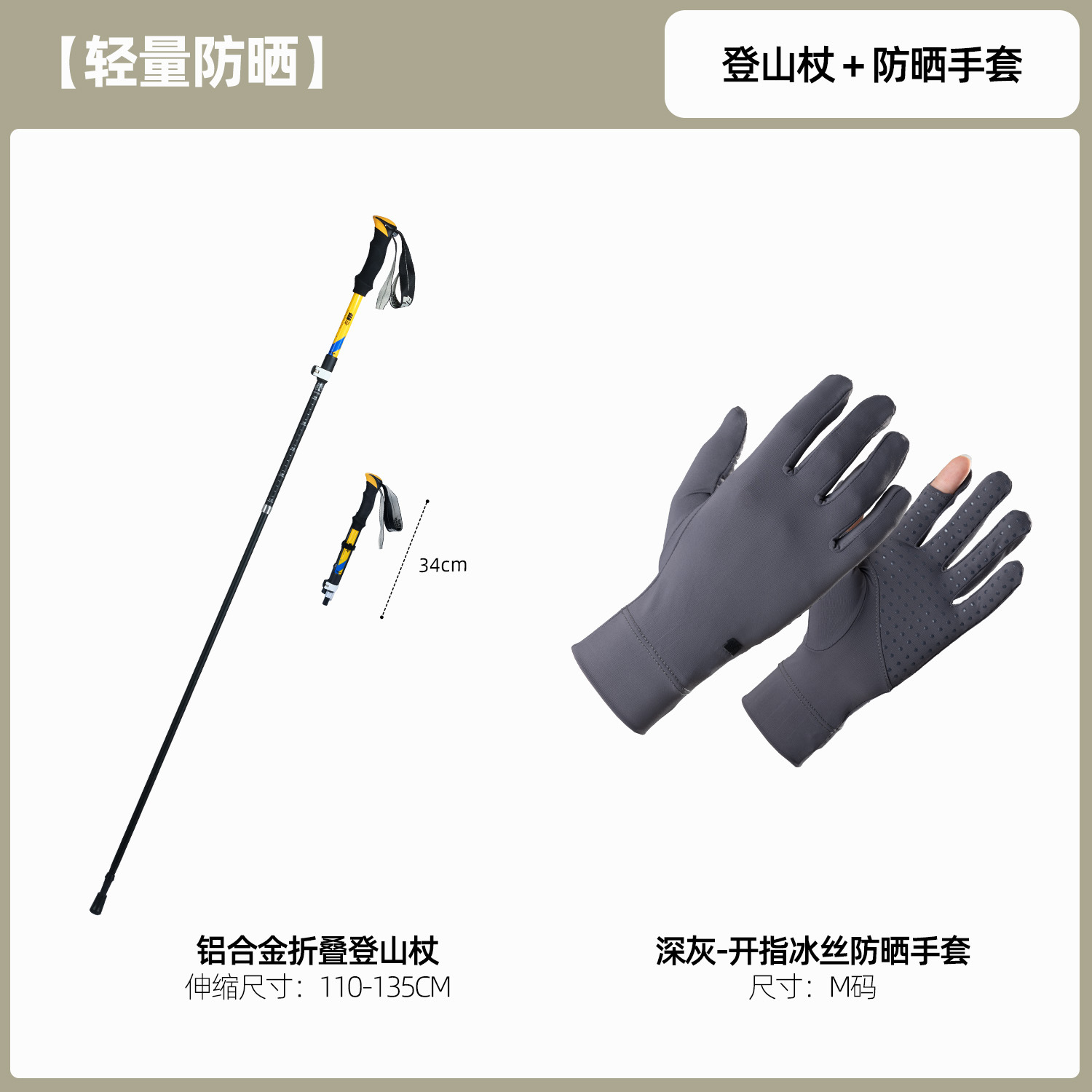 • [경량 자외선 차단] 접이식 트레킹 폴 + 라이트 그레이 오픈 핑거 아이스 실크 자외선 차단 장갑 (M)