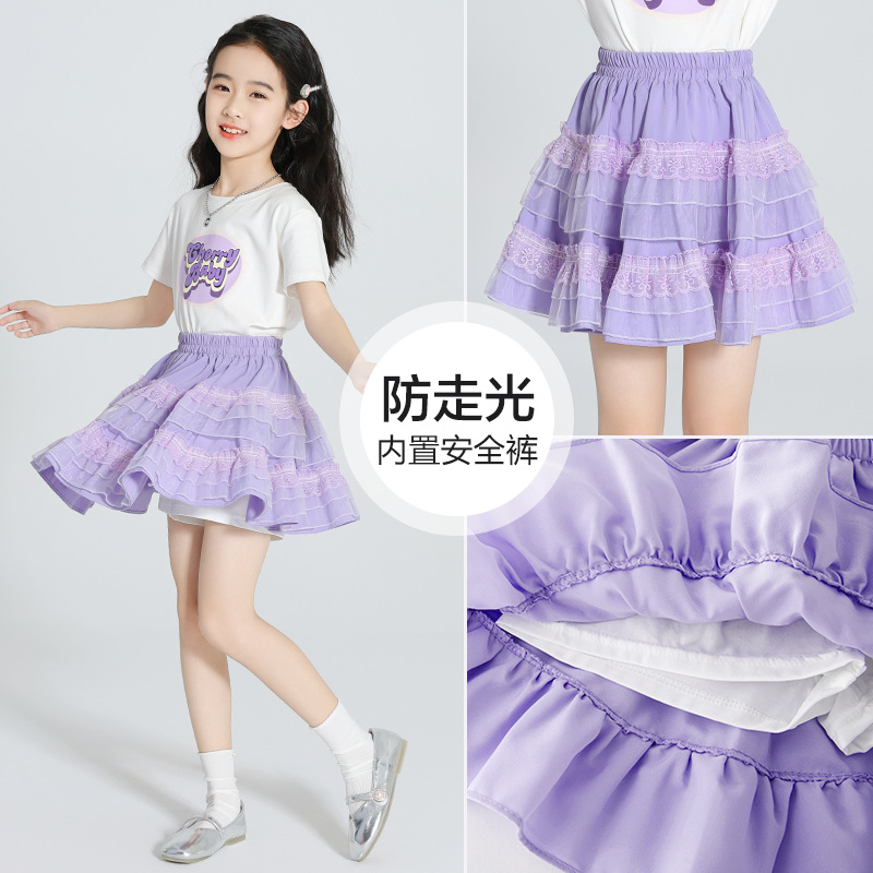 여자 짧은 치마 2025 여름 레이스 폰툰 스커트 미드 빅 키즈 케이크 스커트 웨스턴 스타일 베이비 스커트 여름 스커트