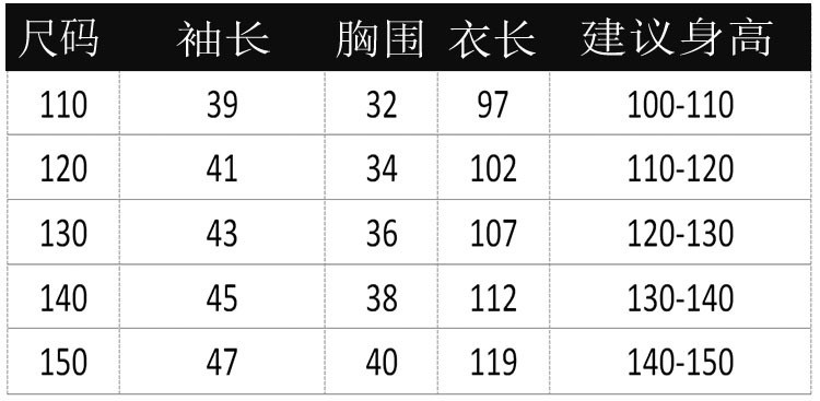 5个码:110  120  130  140  150