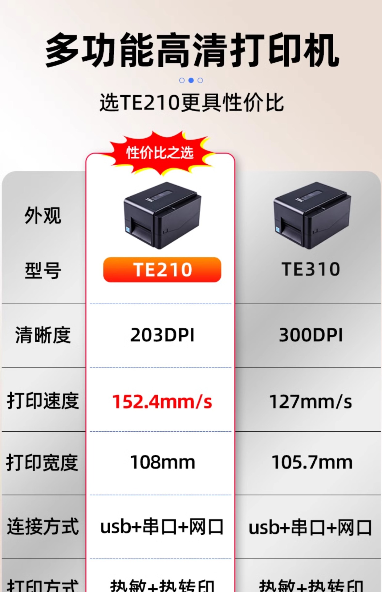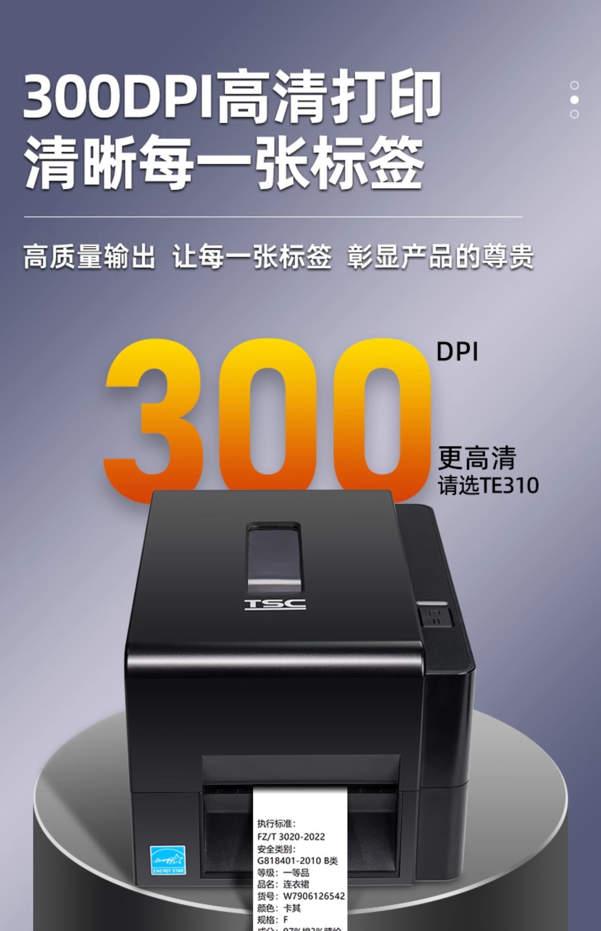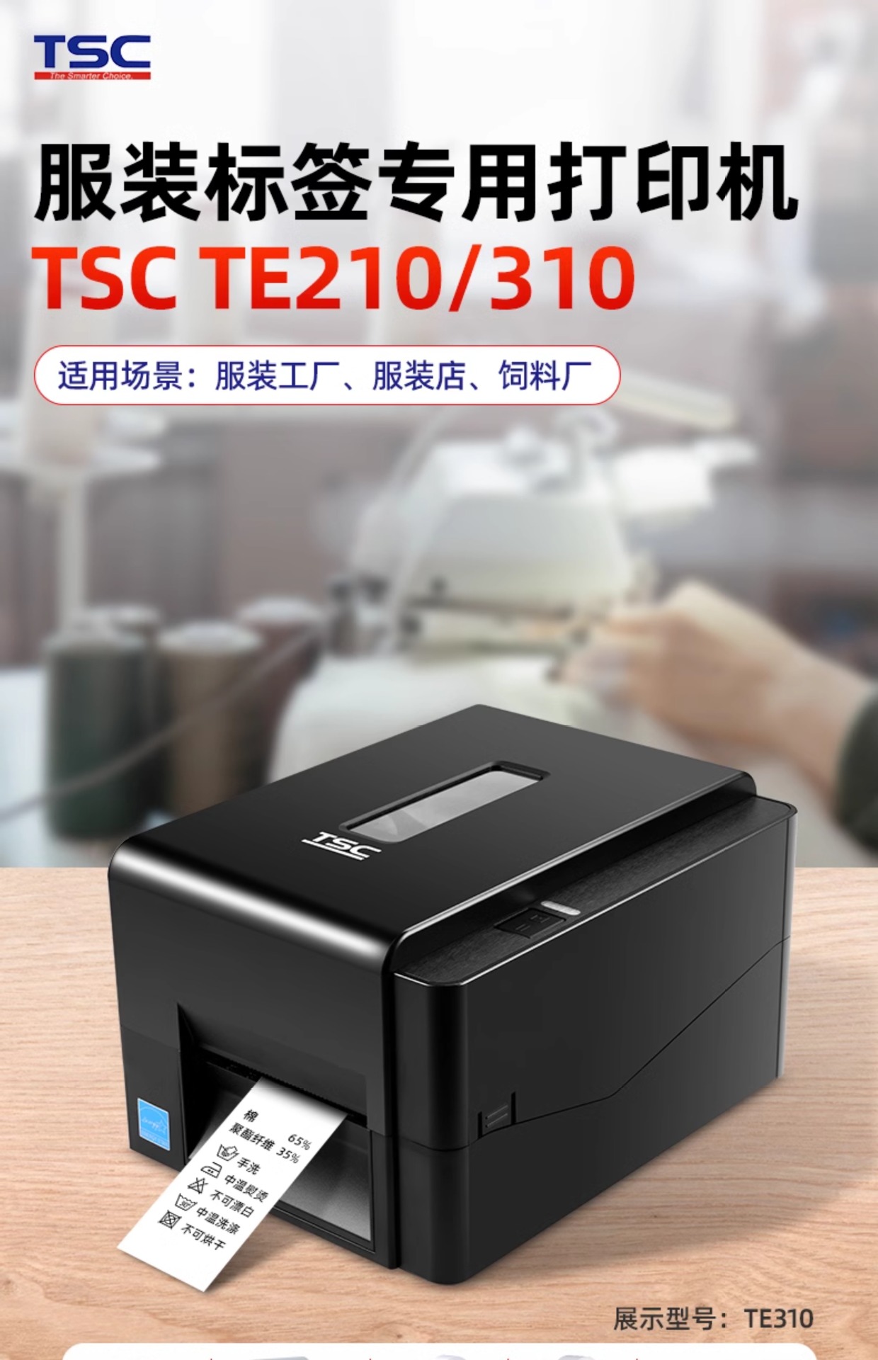 TSC Semi-TE210/TE310 라벨 프린터 열 전달 익스프레스 표면 단일 의류 태그 물 세척 마크스토어 가기