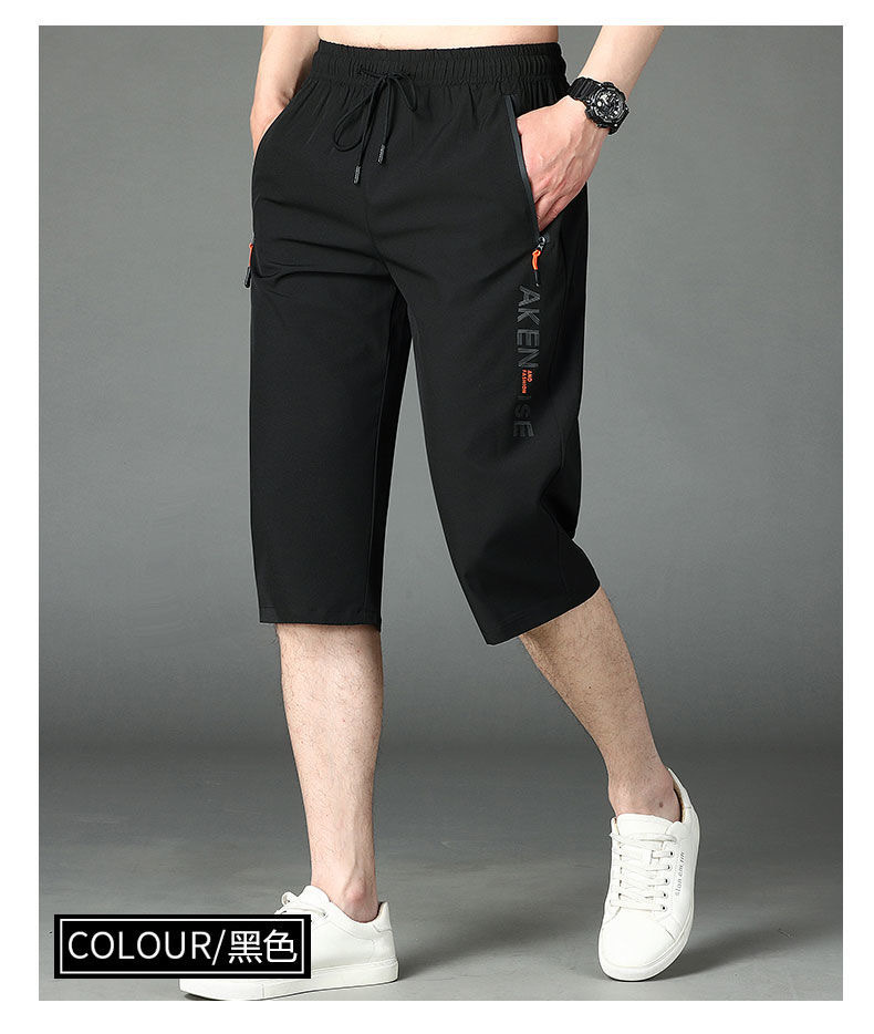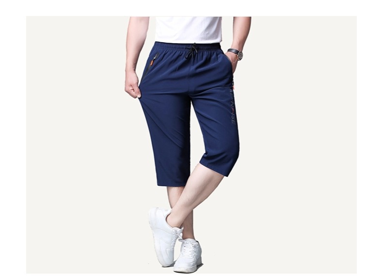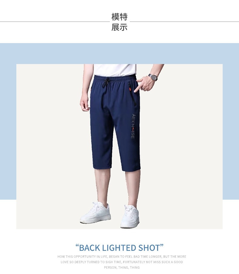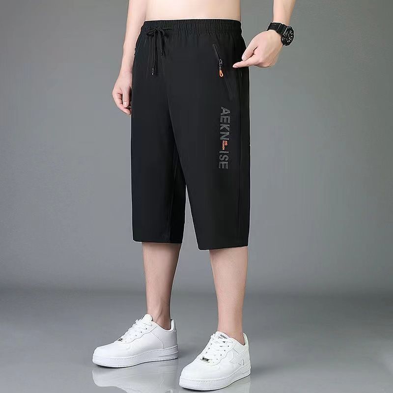 남자 카프리 바지 여름 아이스 실크 바지 남자 여름 중년 및 노인 새로운 남자 하이 허리 스트레이트 하이 엔드 카프리 바지