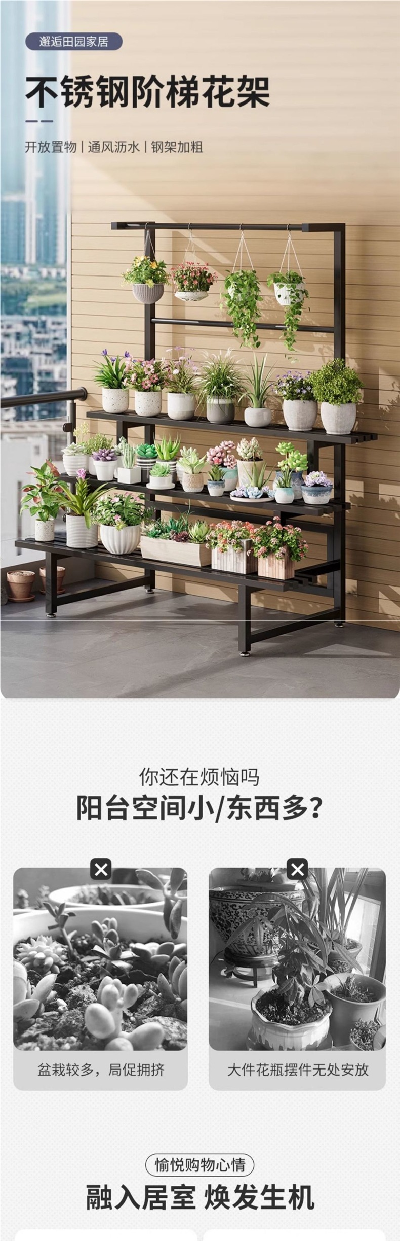 [DIMU] 꽃 랙 저장 랙 발코니 꽃 냄비 랙 아이언 매달린 다육 꽃 랙 거실 바닥 서 간단한스토어 가기