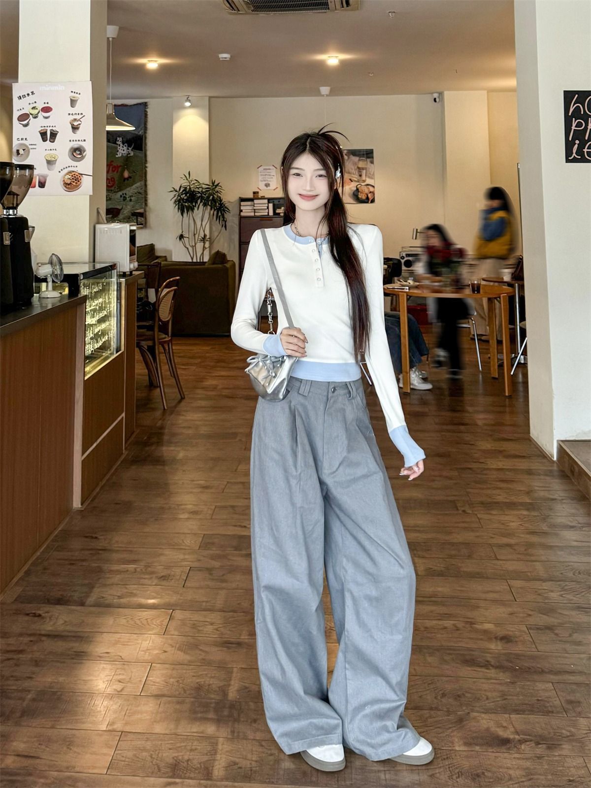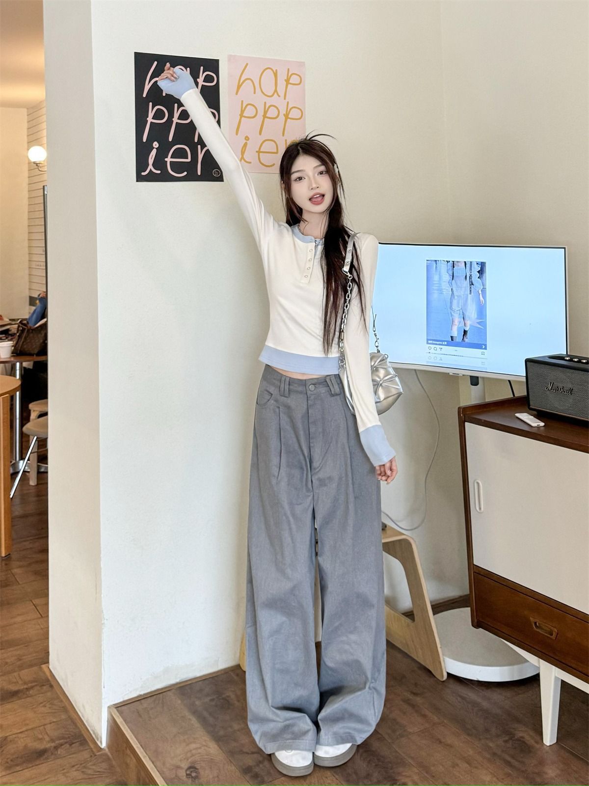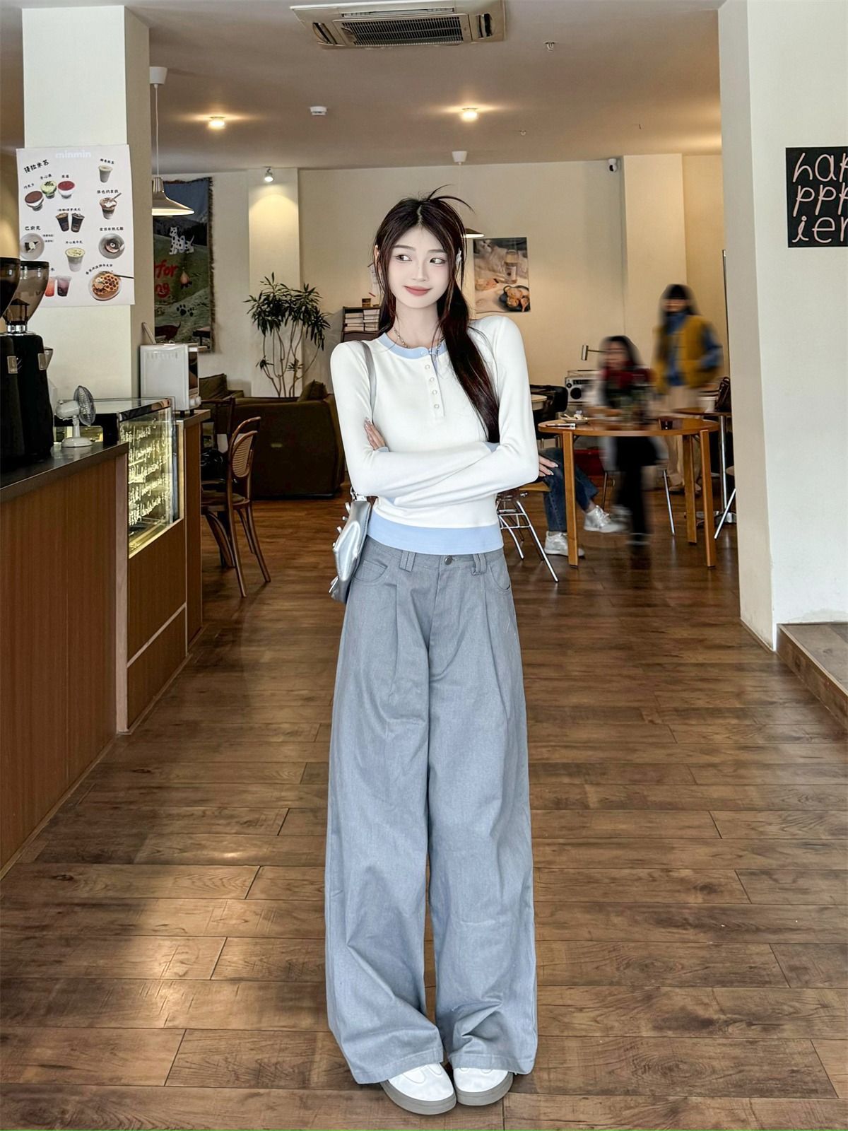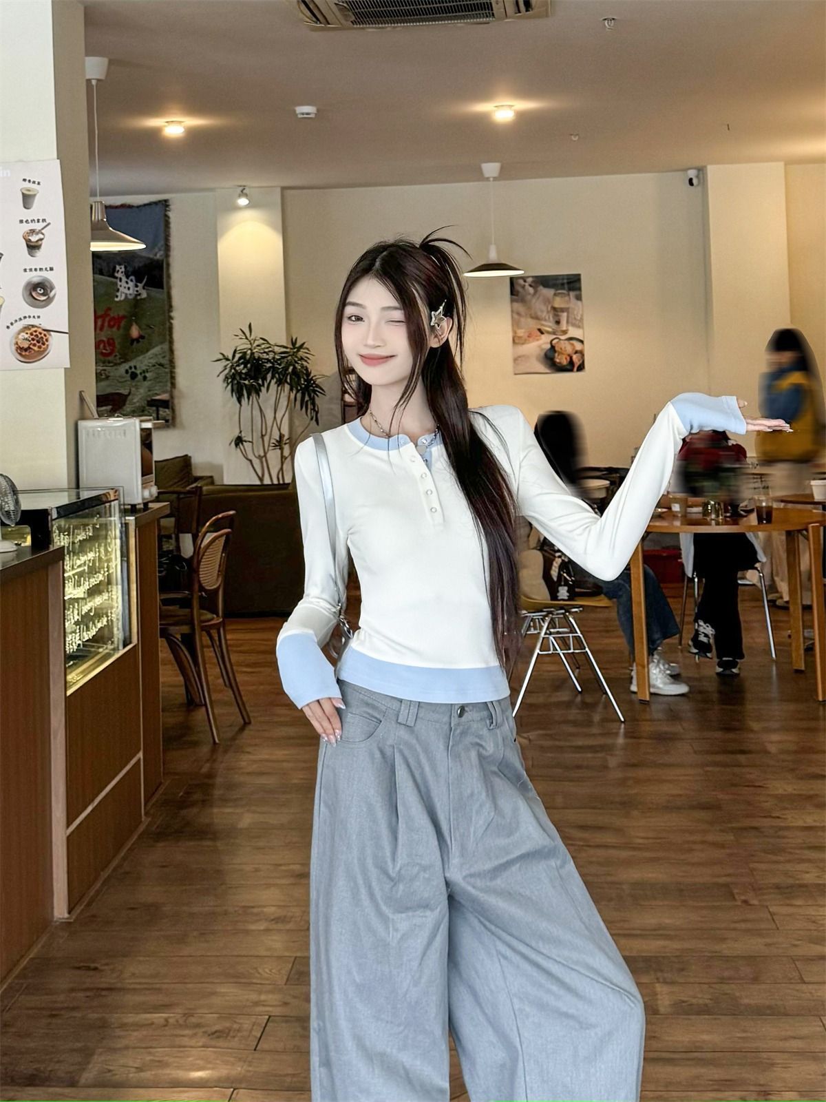 화이트베이스 셔츠 이너 탑 여자 이른 봄 새로운 슬림 핏 탑 크루 넥 가짜 투피스 긴팔 티셔츠스토어 가기