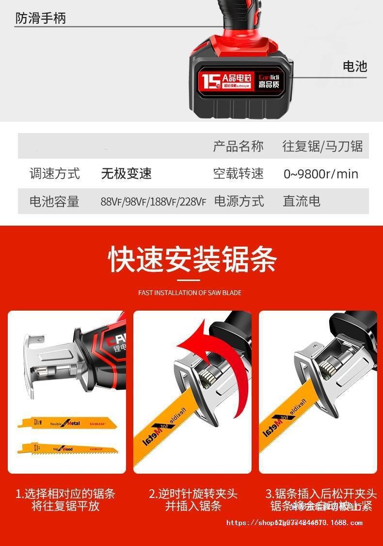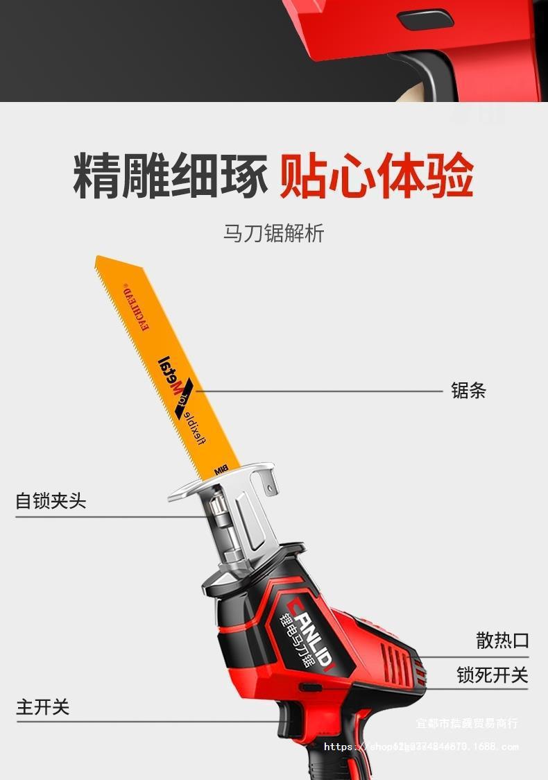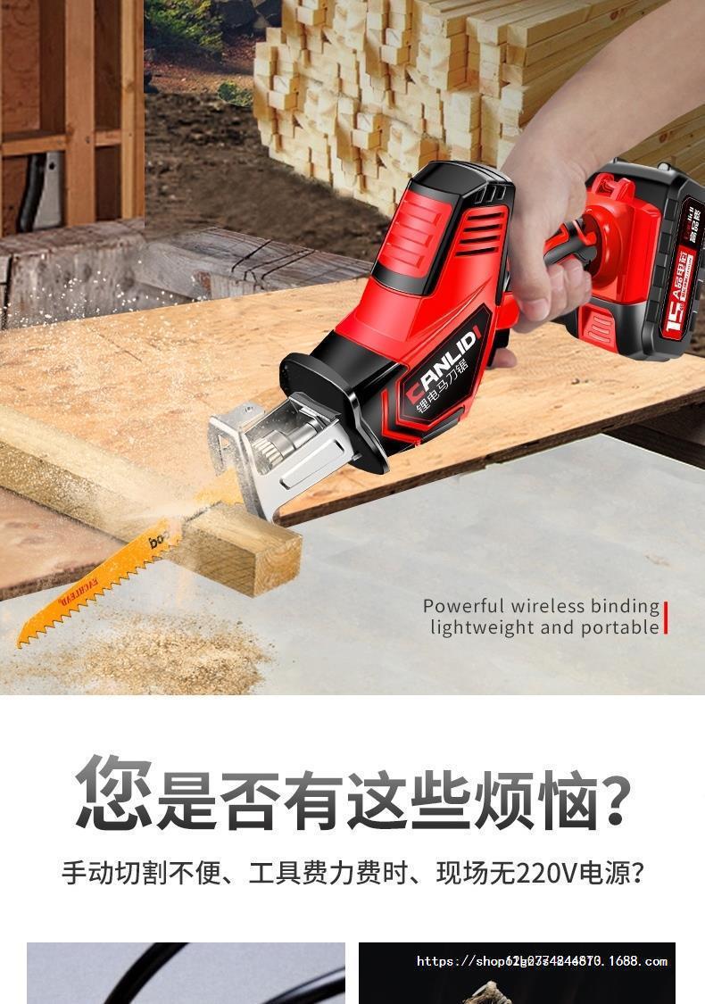 세이버는 왕복 전기 드라마 절단을 보았습니다. 목재 플라스틱 파이프 휴대용 리튬 철 파이프 전기 톱 충전 직접 판매스토어 가기