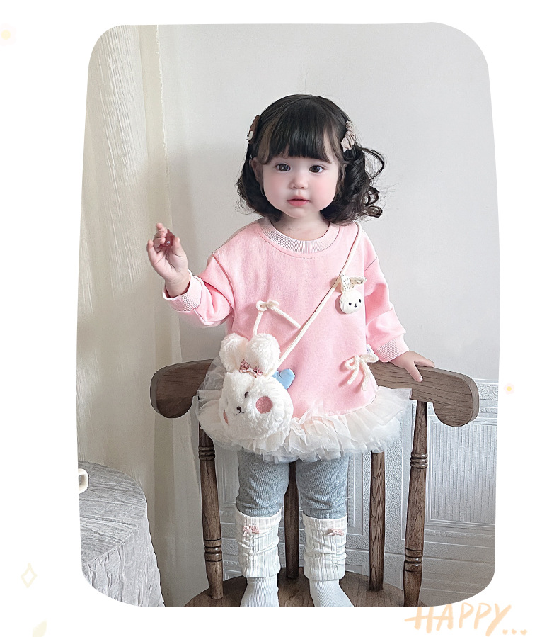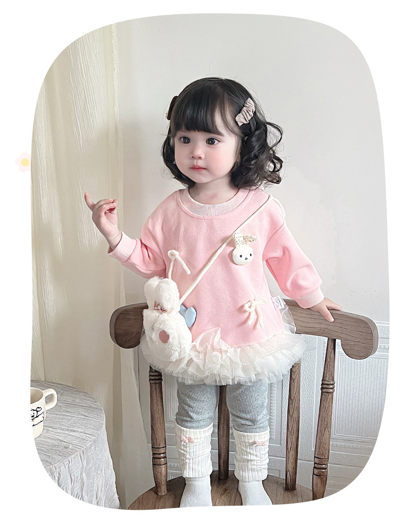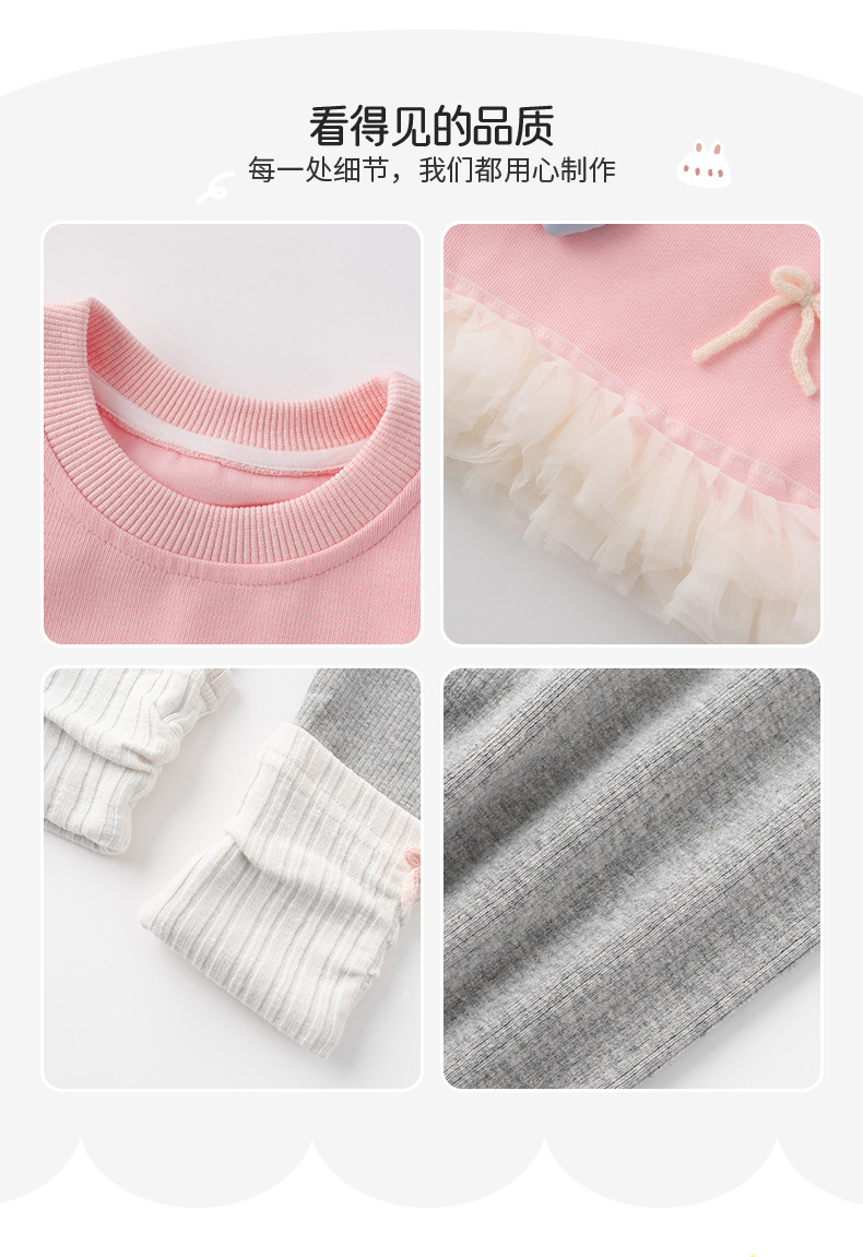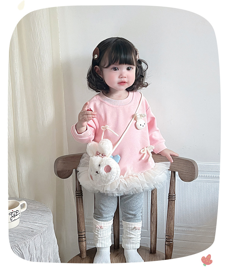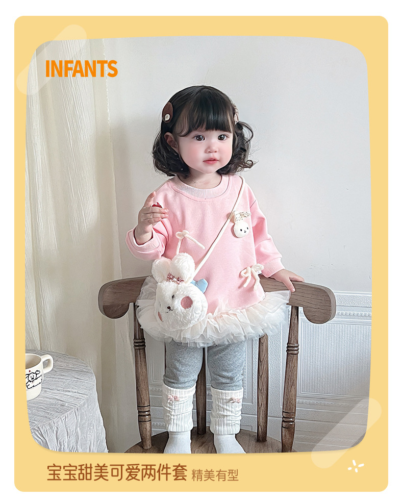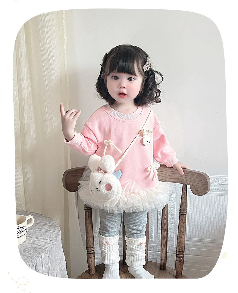 2025 봄 신상 여아 투피스 세트 러브 리본 메쉬 스플라이싱 스웨트셔츠 스커트 레깅스 5125스토어 가기