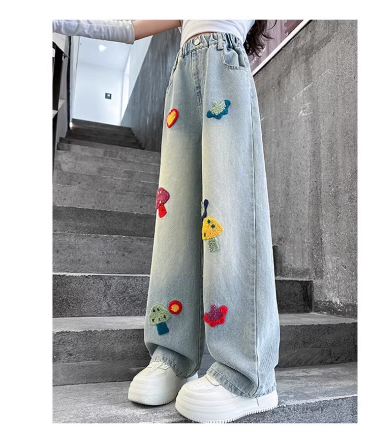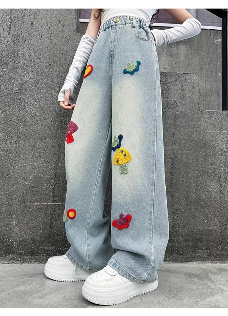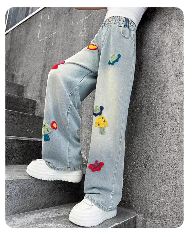 소녀 플레어 팬츠 봄 어린이 버섯 와이드 다리 청바지 인터넷-인기있는 외국식 중대형 어린이 캐주얼 바지