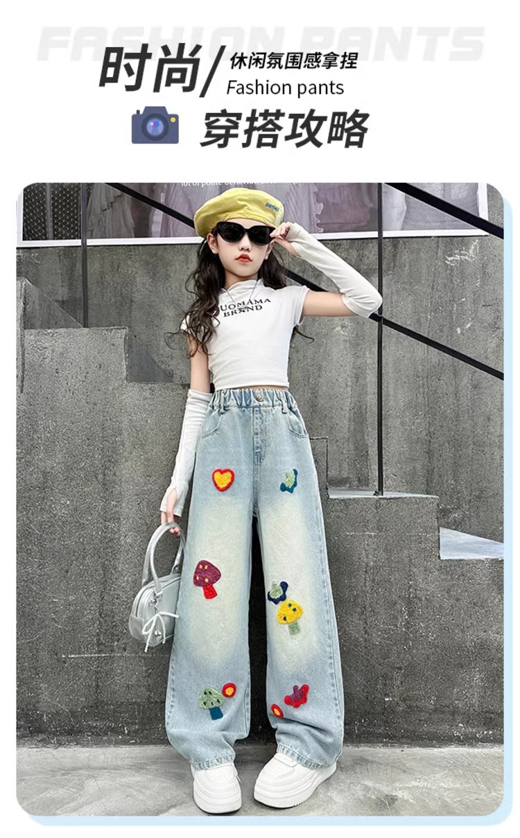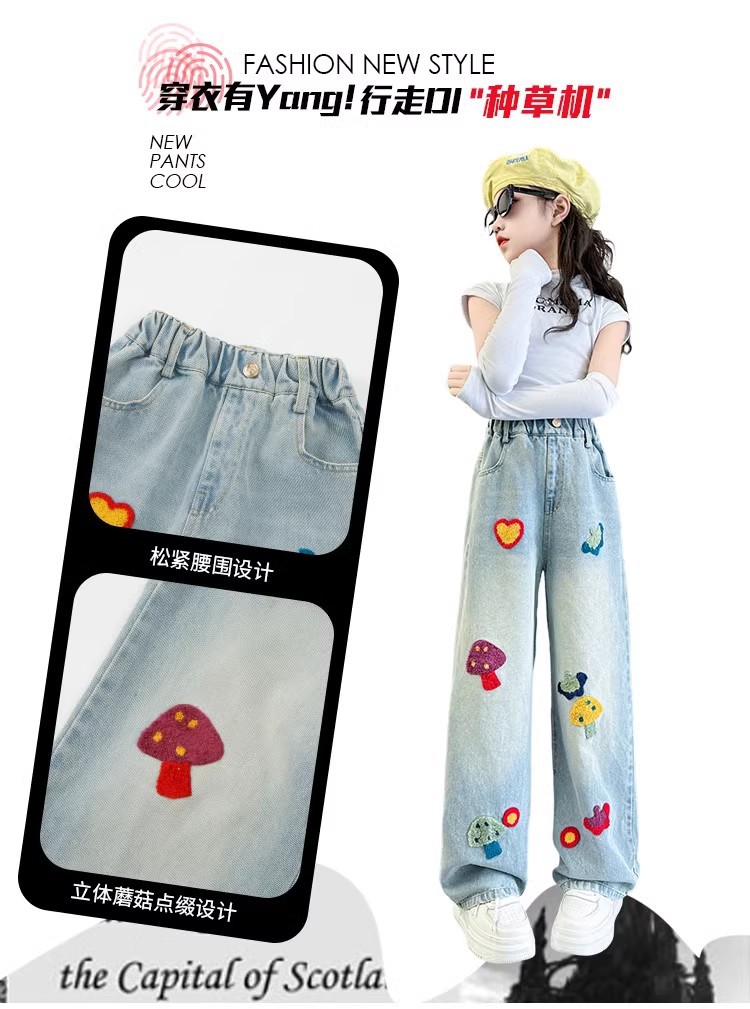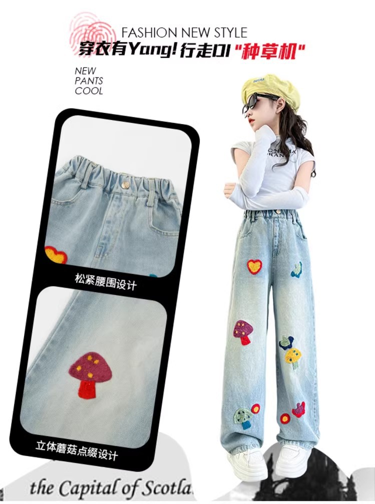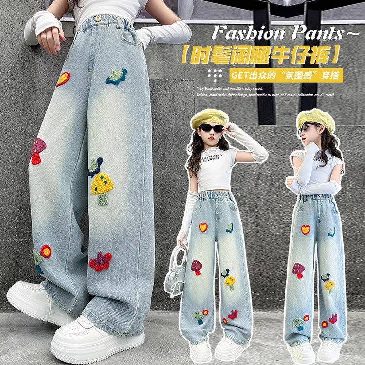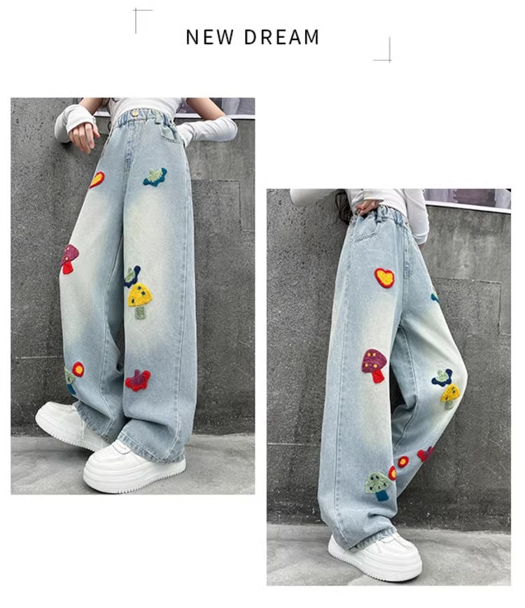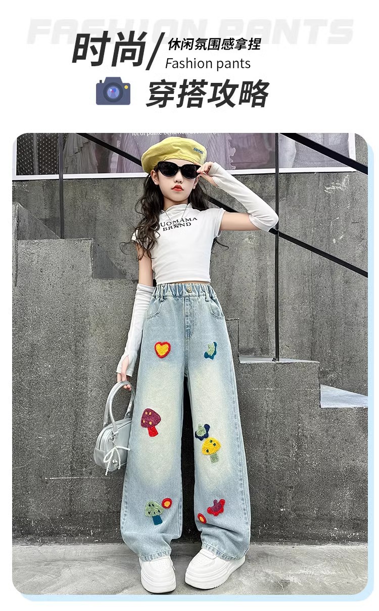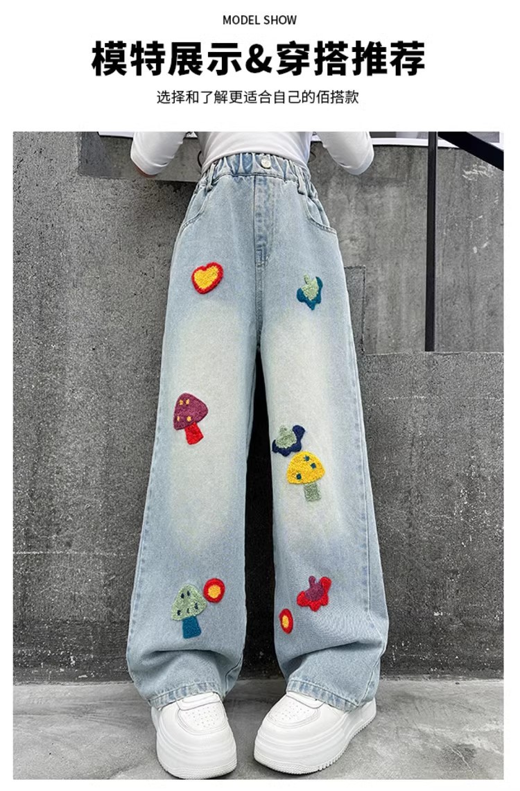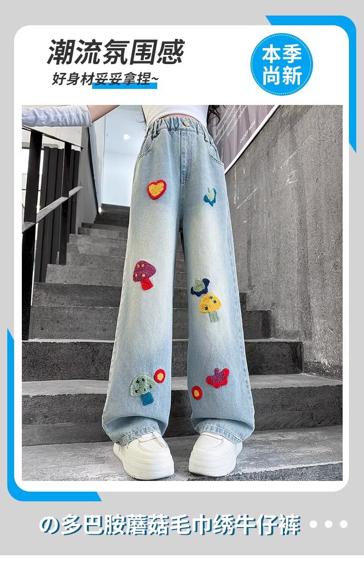 소녀 플레어 팬츠 봄 어린이 버섯 와이드 다리 청바지 인터넷-인기있는 외국식 중대형 어린이 캐주얼 바지스토어 가기