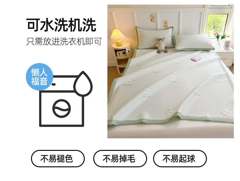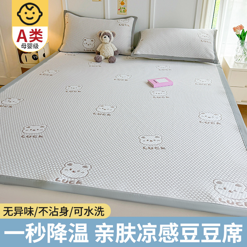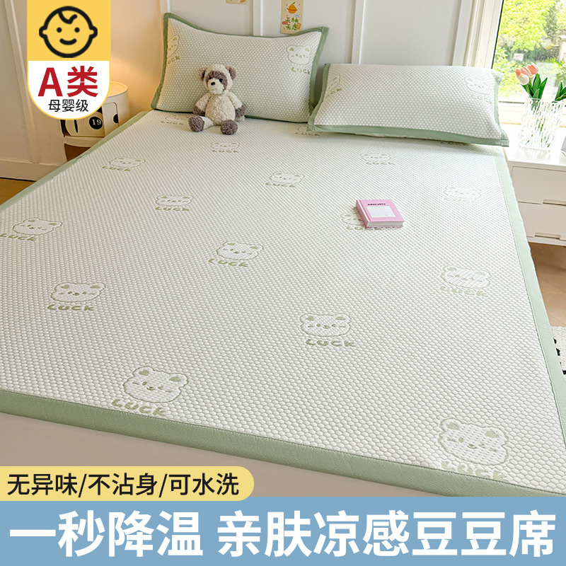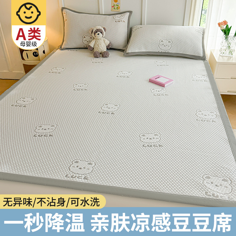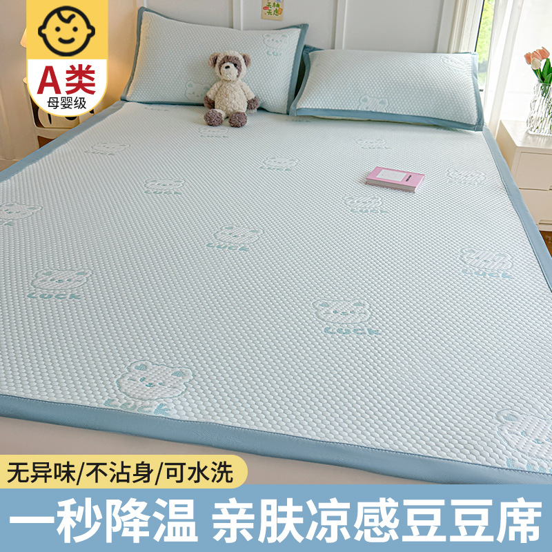여름 2025 새로운 아이스 실크 매트 3 피스 세트 여름 소프트 매트 기계 세탁기 대나무 매트 쿨 어머니와 유아 등급 등나무 매트스토어 가기