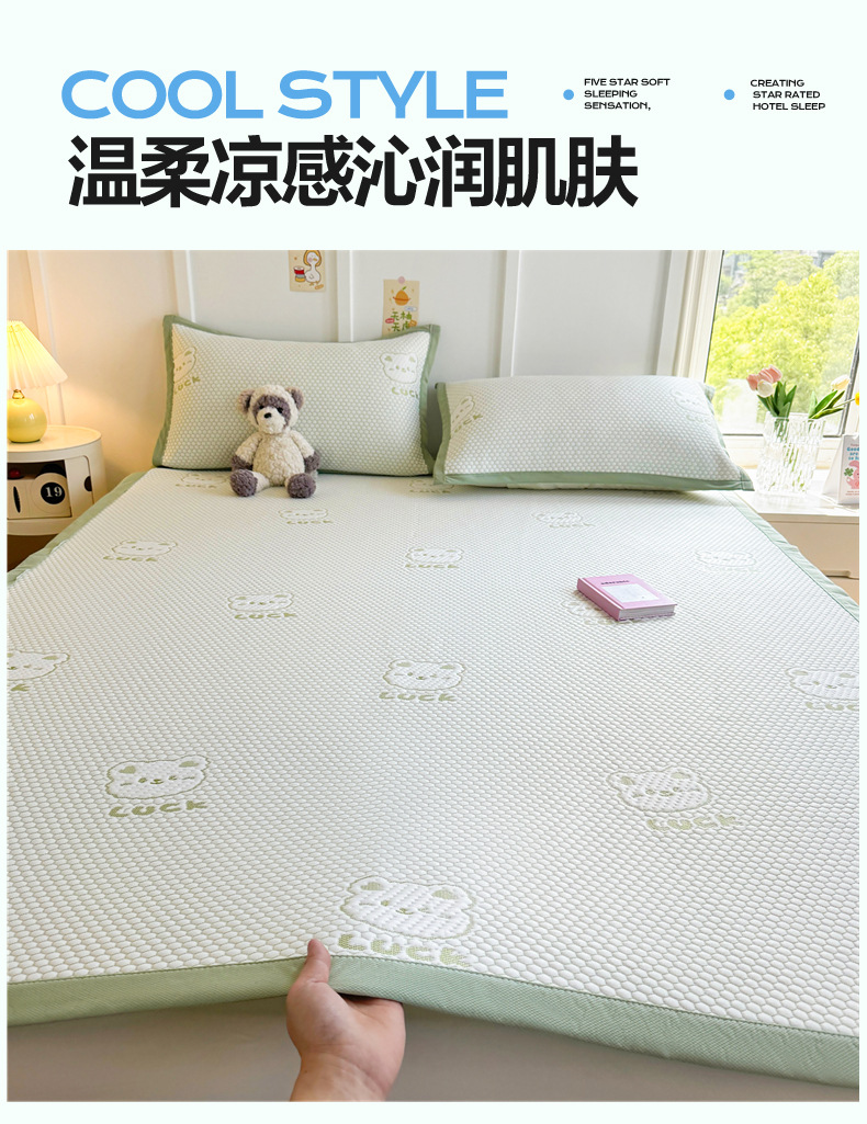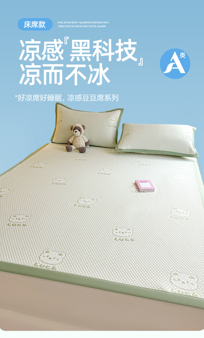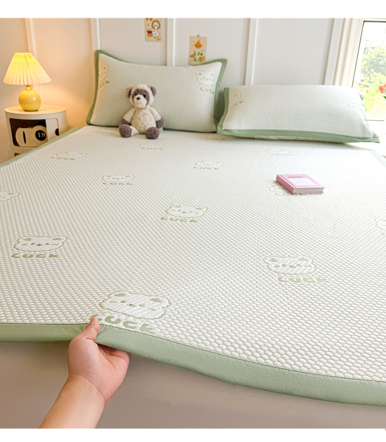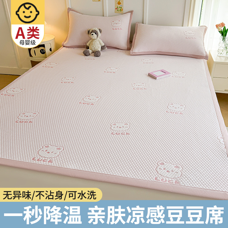 여름 2025 새로운 아이스 실크 매트 3 피스 세트 여름 소프트 매트 기계 세탁기 대나무 매트 쿨 어머니와 유아 등급 등나무 매트스토어 가기