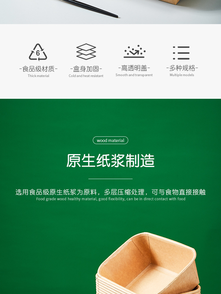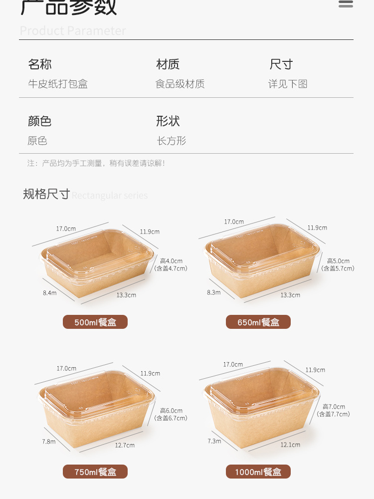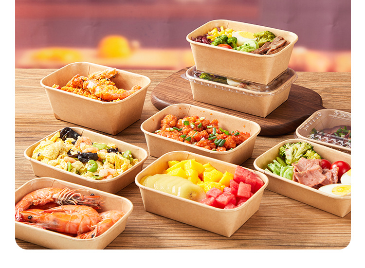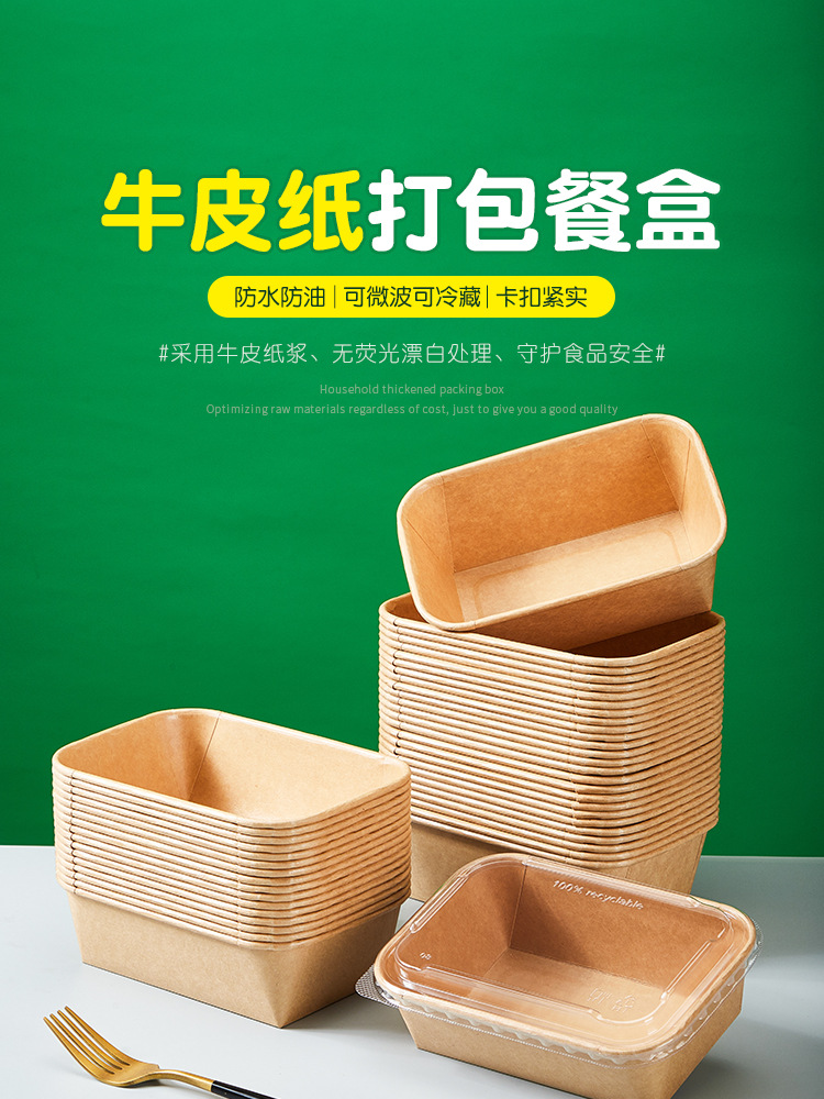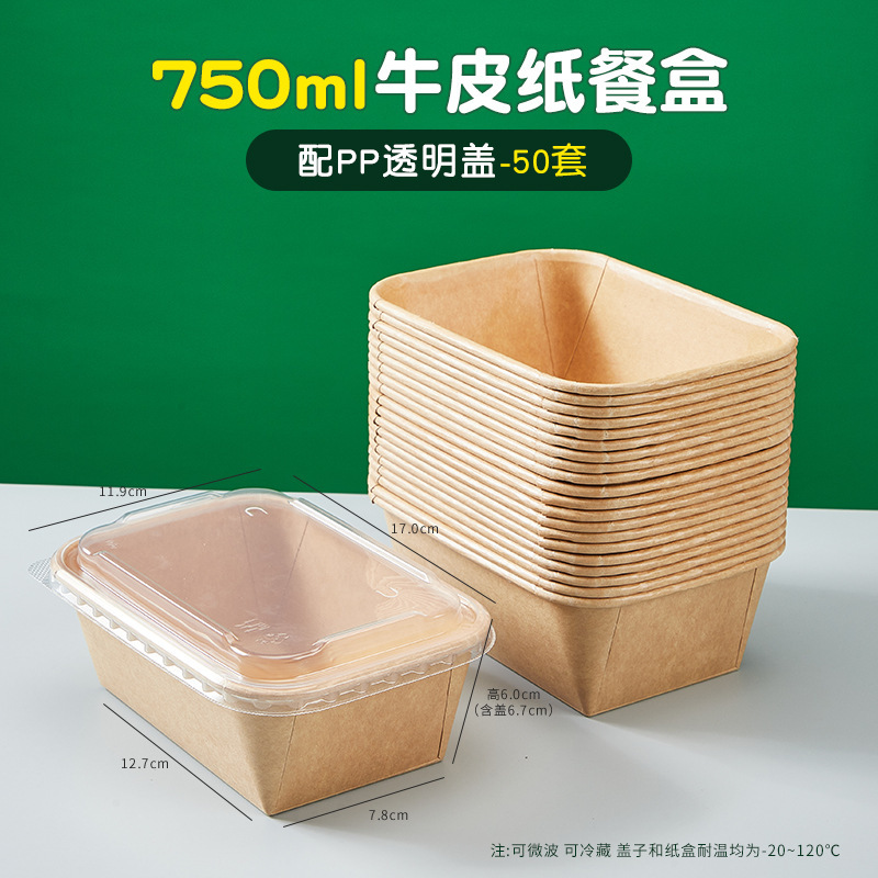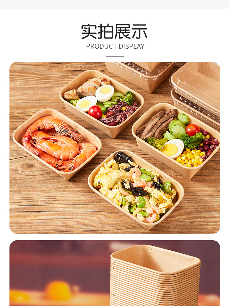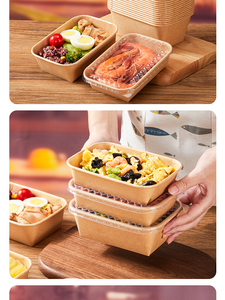 크래프트 종이 도시락 음식 급료 전자레인지 가열 상자 일회용 도시락 펀치 상자 뚜껑 밥 그릇 피크닉