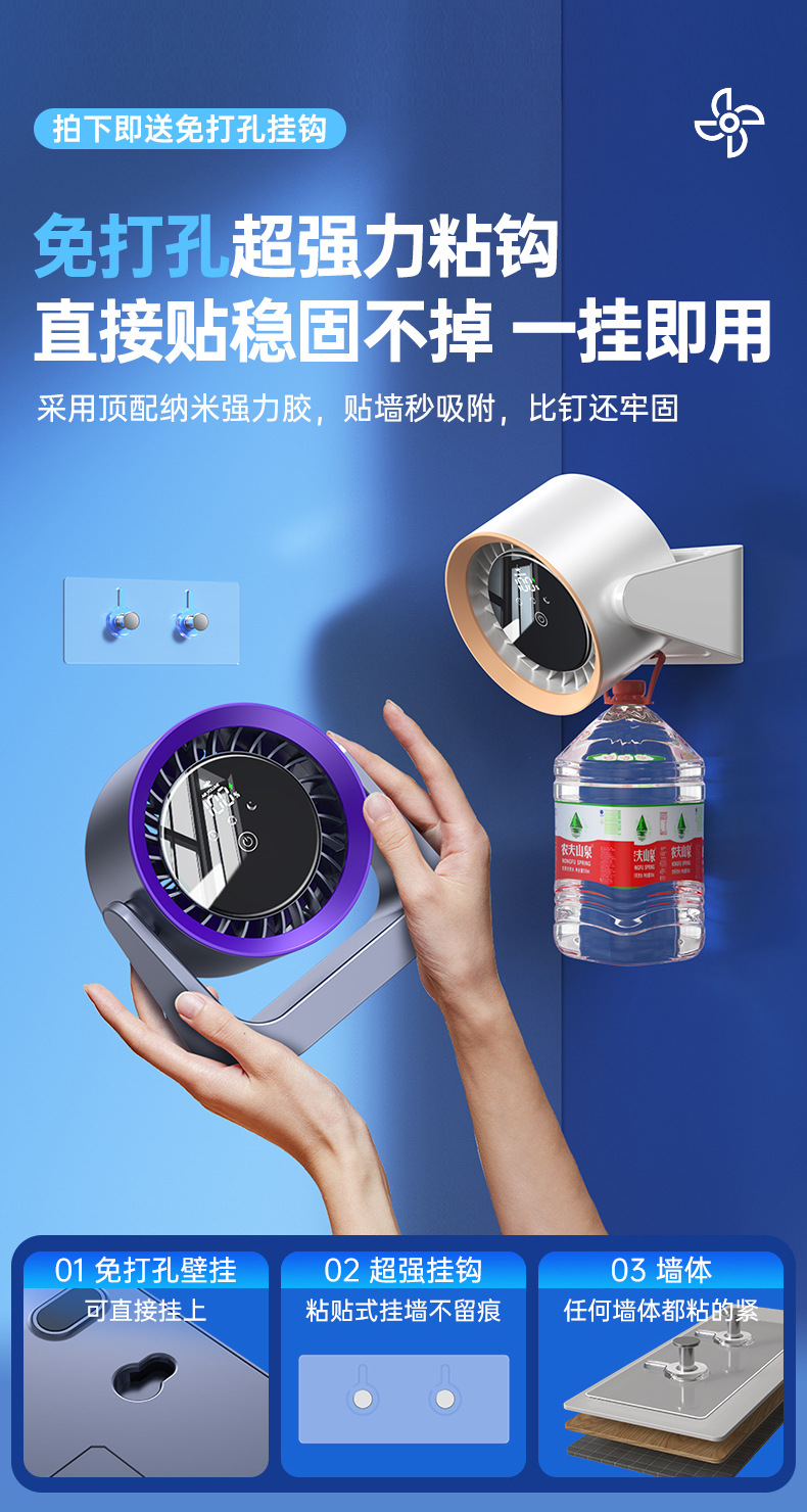 2025 순환 팬 데스크탑 팬 usb 무음 팬 비 펀칭 벽걸이 주방 기숙사 사무실 데스크탑 팬스토어 가기