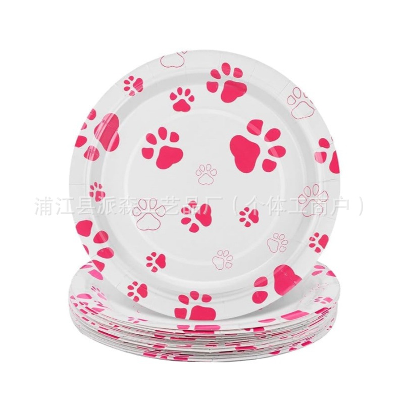 개 핑크 발자국 귀여운 애완 동물 생일 파티 장식 축하 일회용 종이 트레이 종이 컵 종이 타월 포크 식기스토어 가기