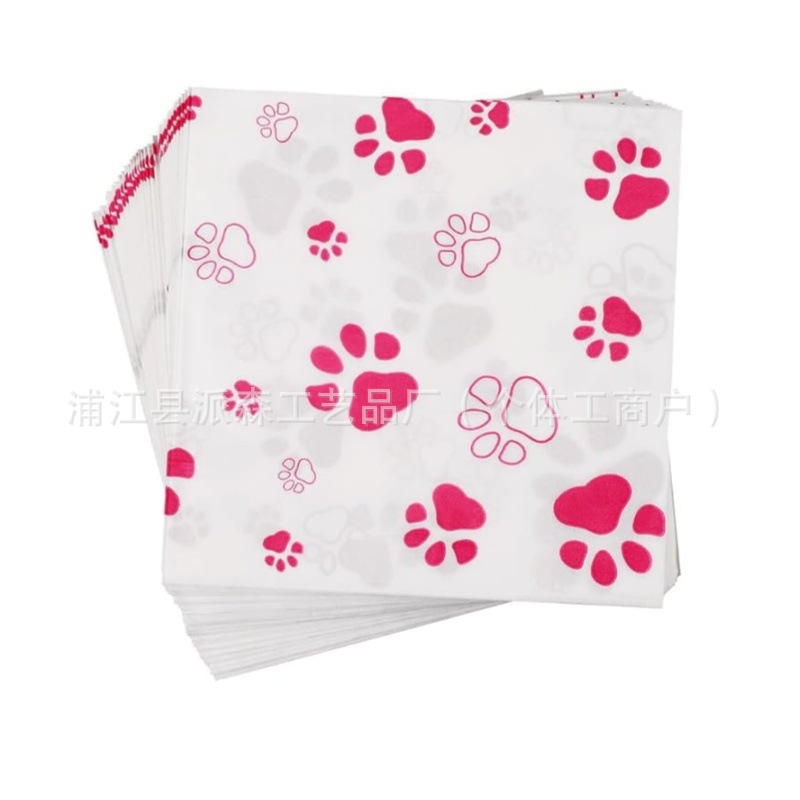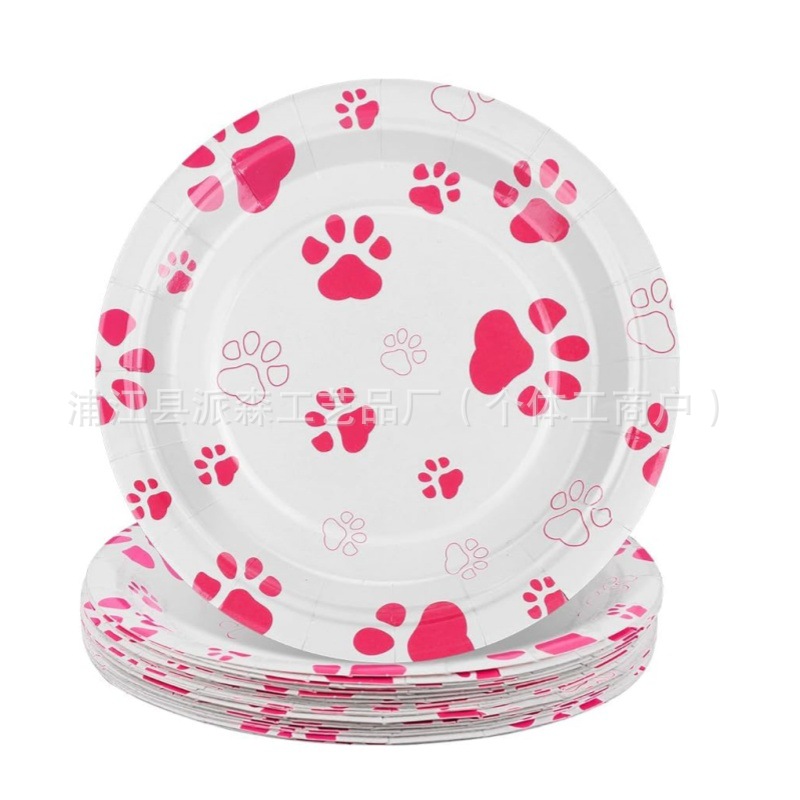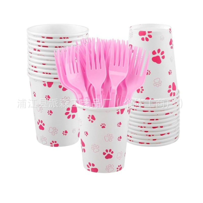개 핑크 발자국 귀여운 애완 동물 생일 파티 장식 축하 일회용 종이 트레이 종이 컵 종이 타월 포크 식기