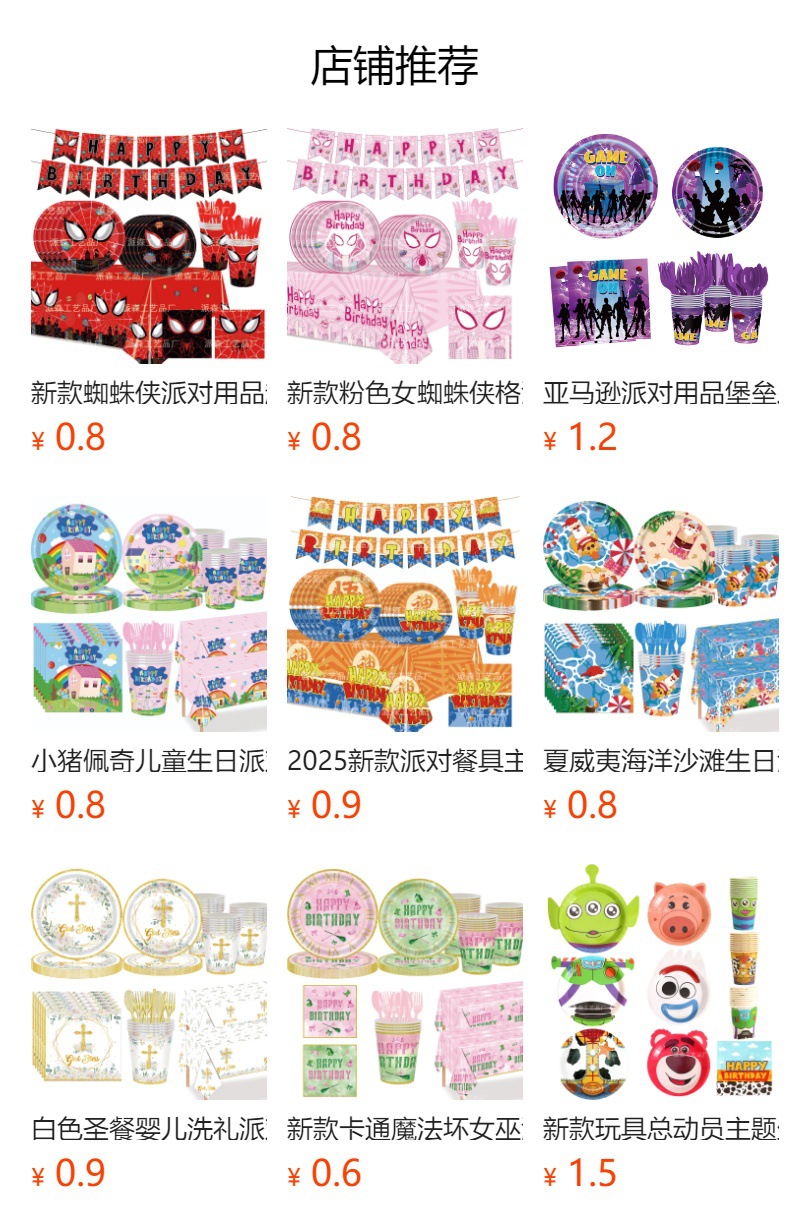 生日,节日,聚会,派对一次性餐具,气氛布置装饰用品等