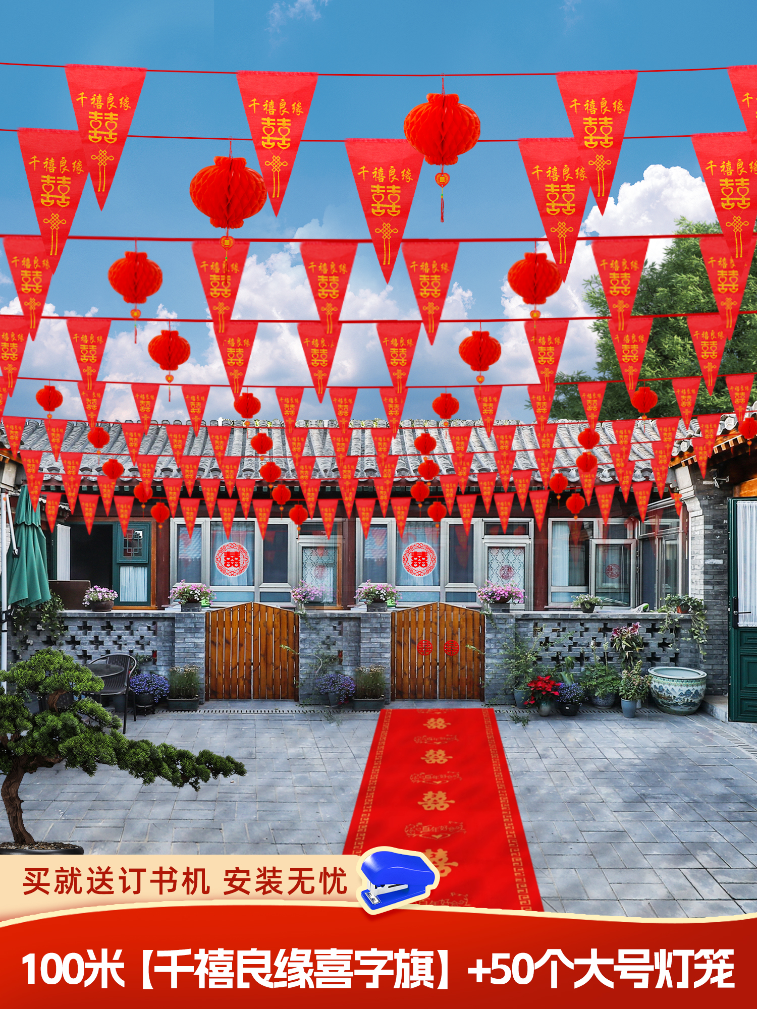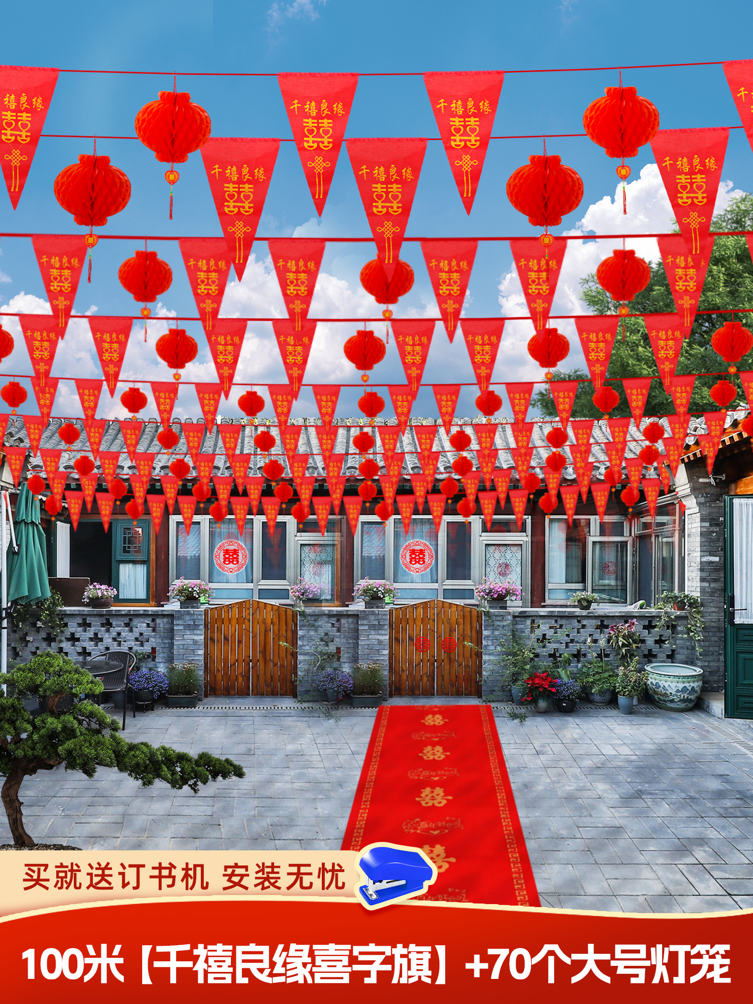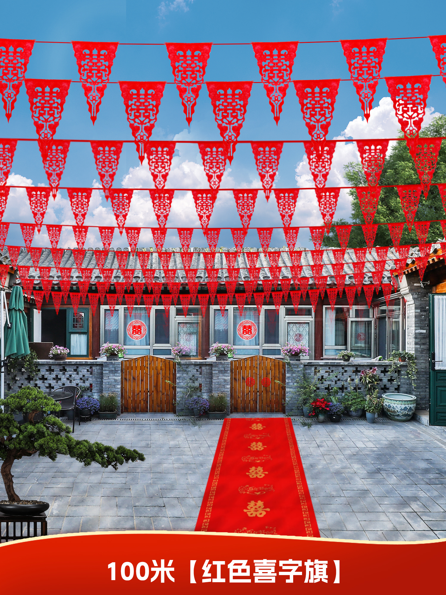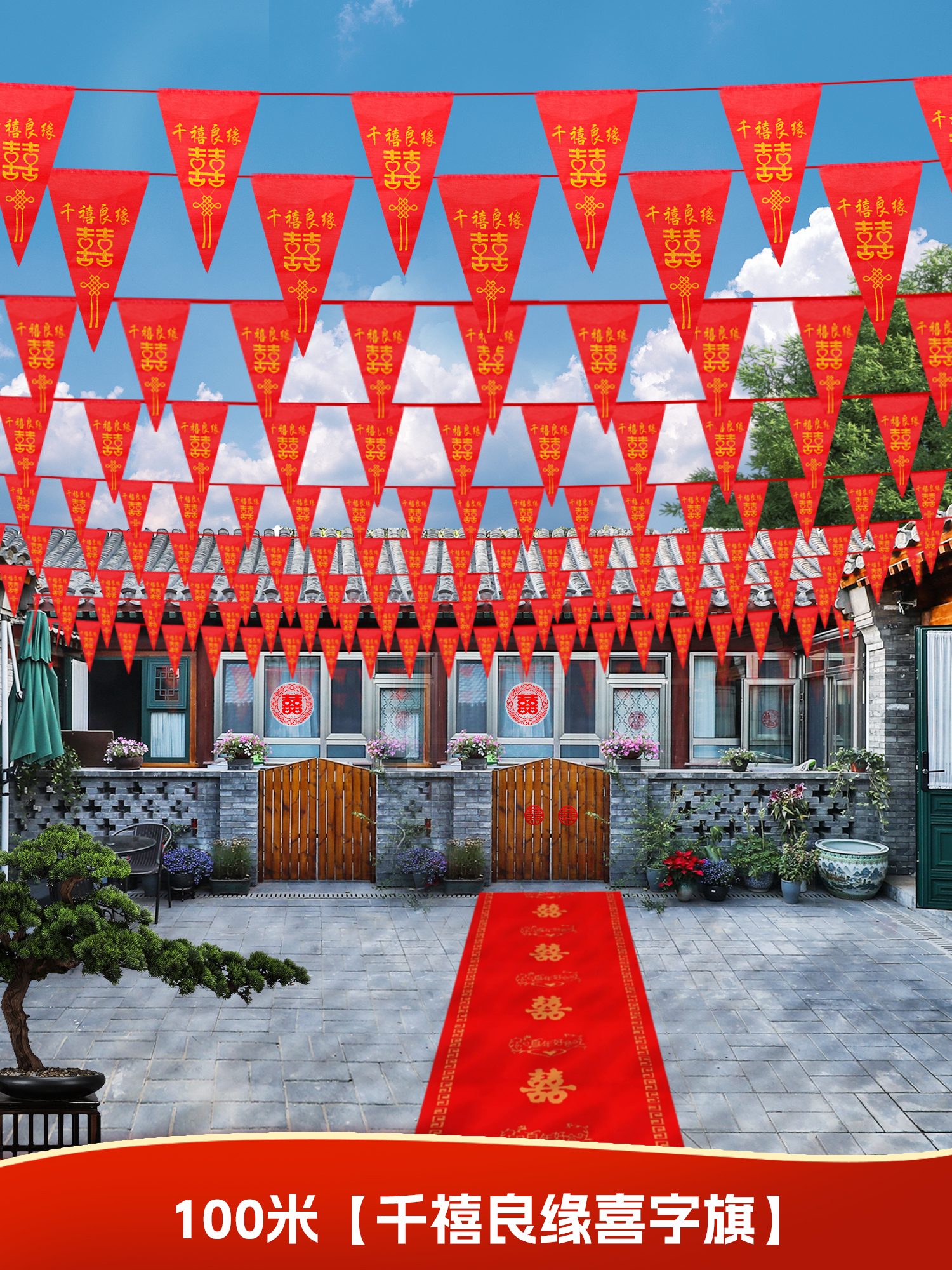 코트야드 장식 웨딩 컬러 플래그 웨딩 축하 캐릭터 농촌 꽃 컬러 벨트 마당 공급 Daquan 웨딩 룸 레이아웃 레드 플래그스토어 가기