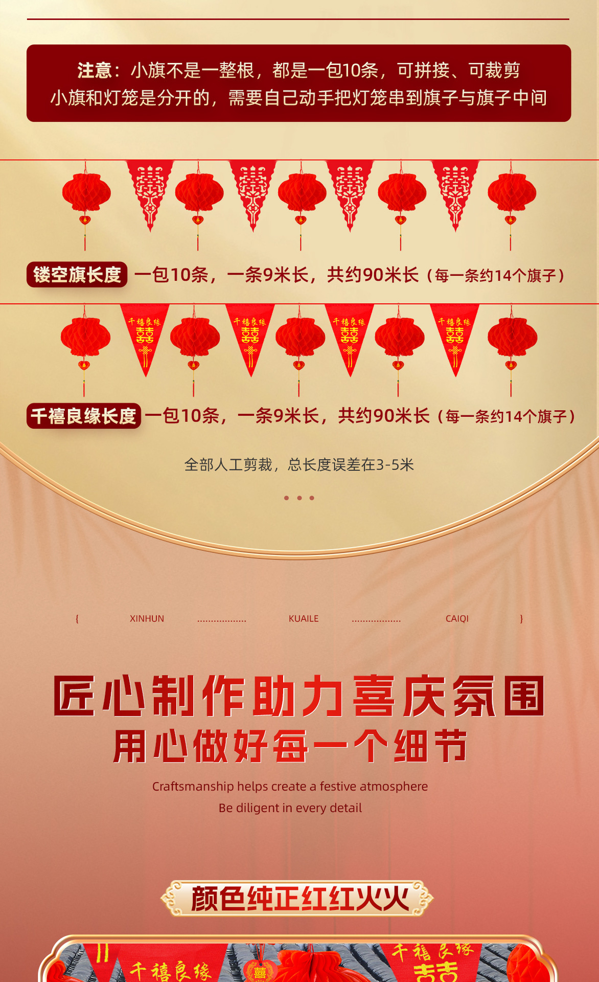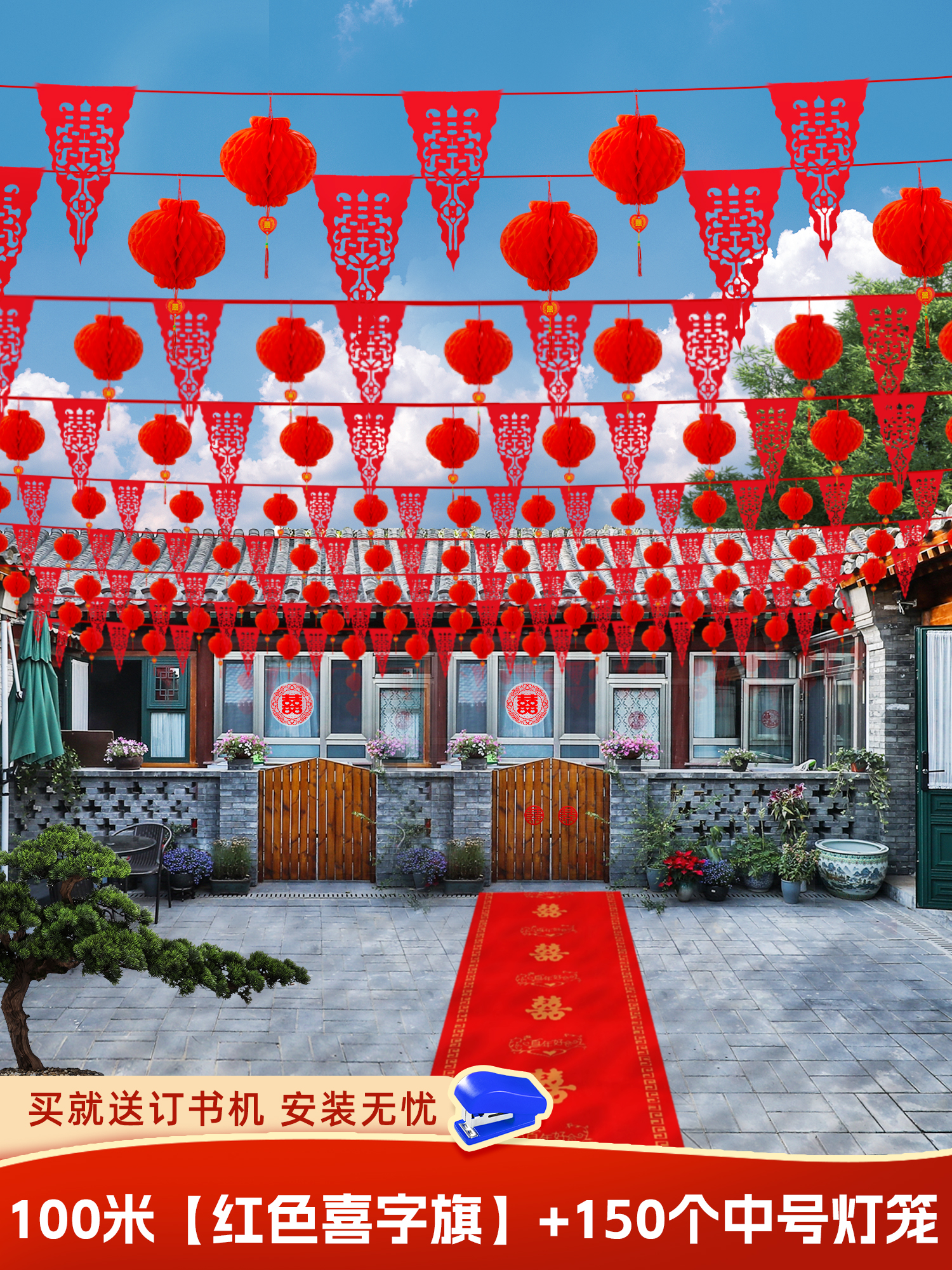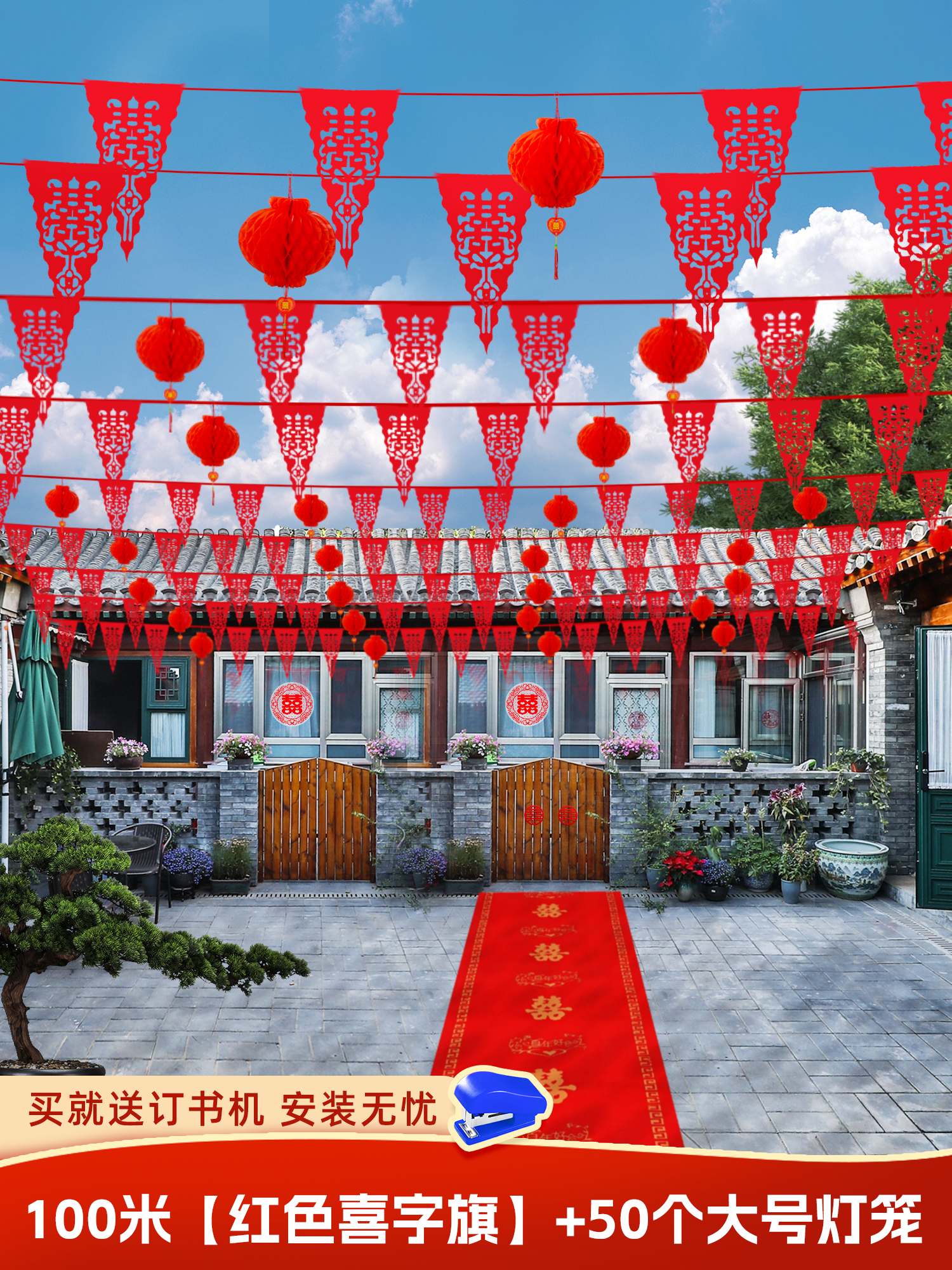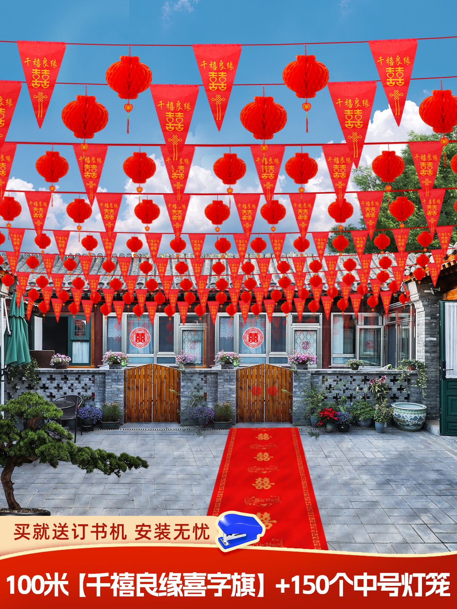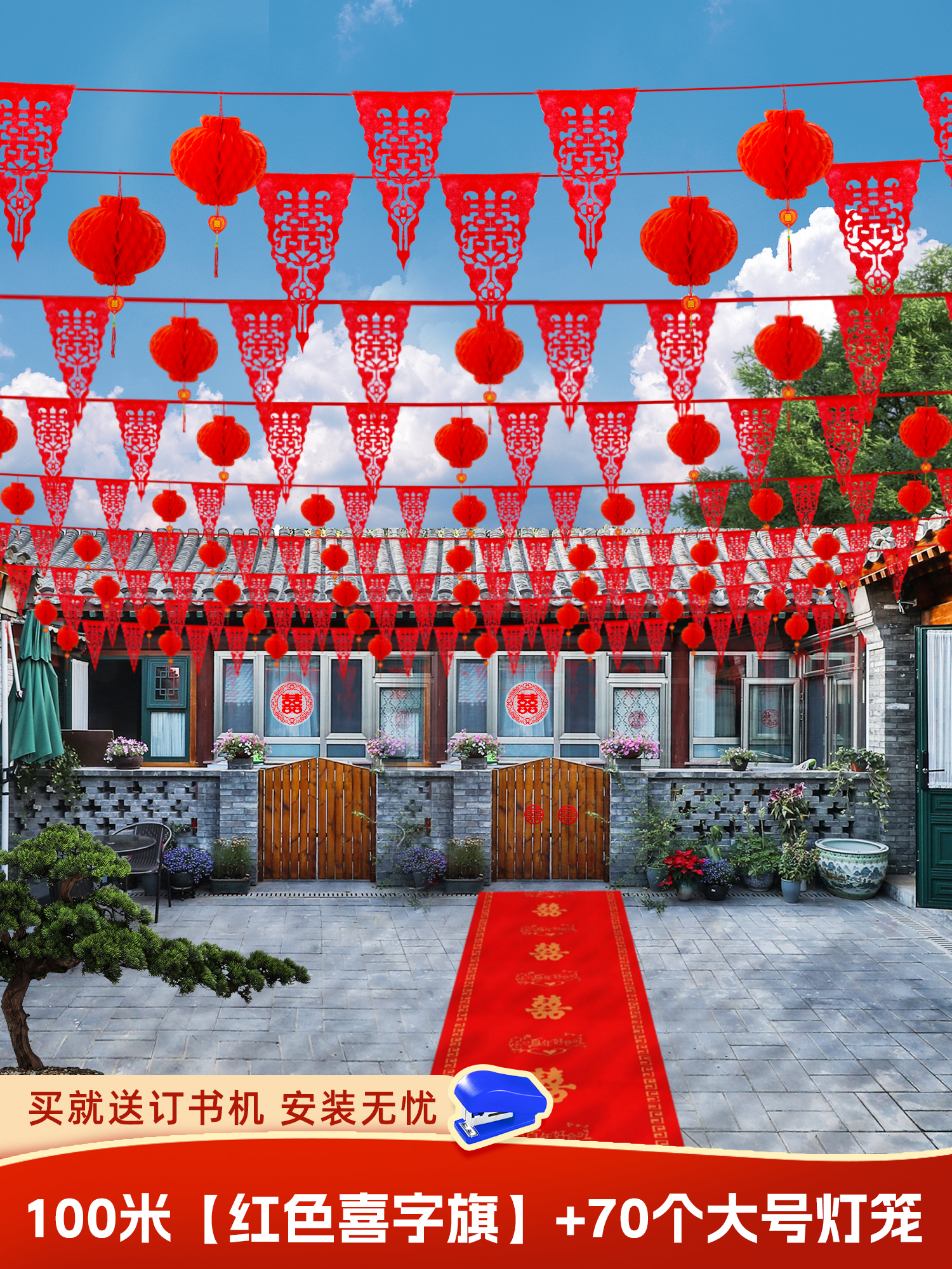 코트야드 장식 웨딩 컬러 플래그 웨딩 축하 캐릭터 농촌 꽃 컬러 벨트 마당 공급 Daquan 웨딩 룸 레이아웃 레드 플래그스토어 가기