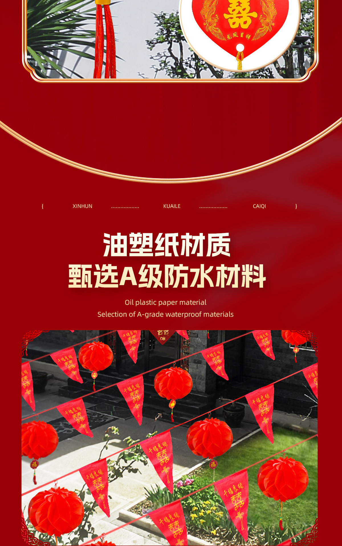 코트야드 장식 웨딩 컬러 플래그 웨딩 축하 캐릭터 농촌 꽃 컬러 벨트 마당 공급 Daquan 웨딩 룸 레이아웃 레드 플래그