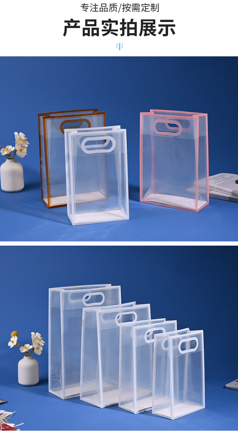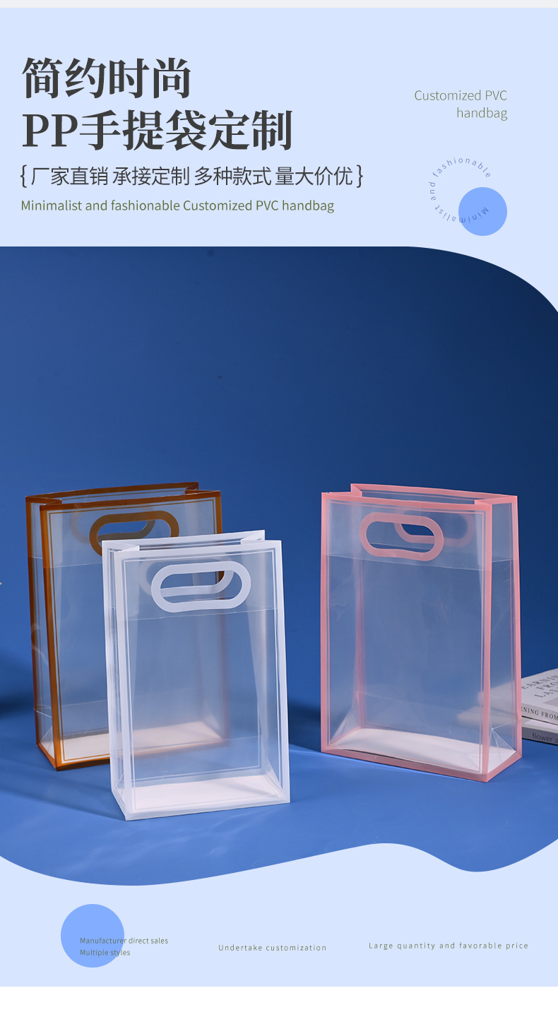 PP 투명 핸드백, 맞춤형 플라스틱 반투명 선물 가방, 기념품 가방, 고급 재고 도매, 인쇄 가능