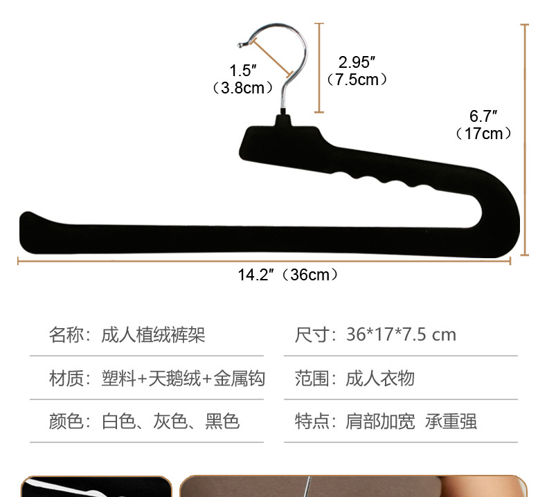 맞춤형 바지걸이, 거위 모양의 낮은 목, 가정용 미끄럼 방지, 흔적 없는 옷걸이, 벨벳 처리된 두꺼운 옷장 걸이 바지 보관 유물스토어 가기
