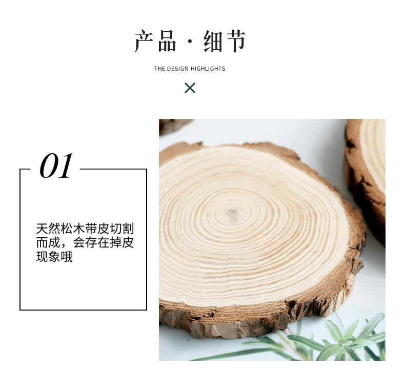 인즈 스타일 노르딕 스타일 로그 코스터 천연 소나무 차임 라운드 우드 차임 단열 패드 아로마 테라피 캔들 패드 장식 장식품