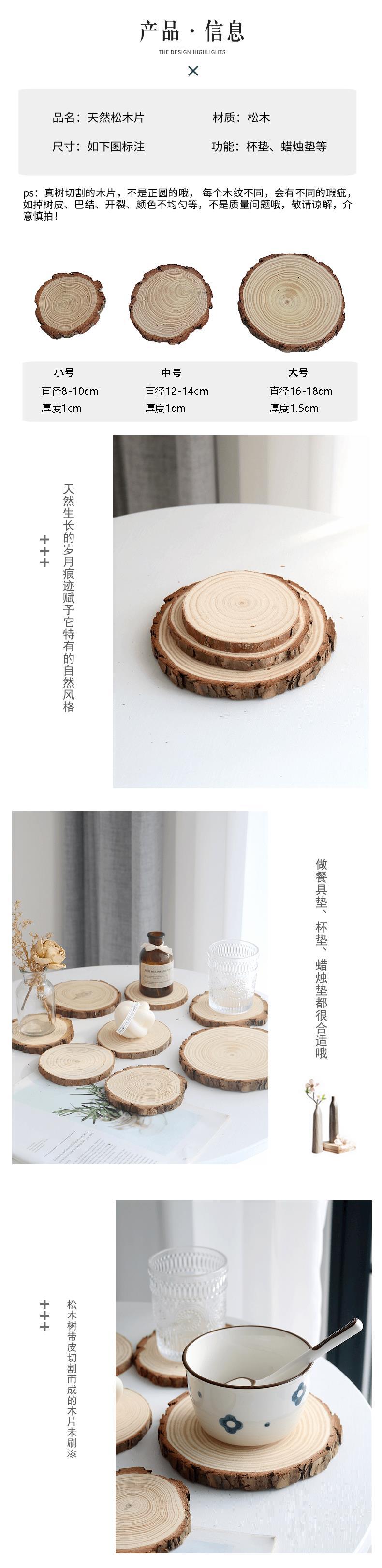 인즈 스타일 노르딕 스타일 로그 코스터 천연 소나무 차임 라운드 우드 차임 단열 패드 아로마 테라피 캔들 패드 장식 장식품스토어 가기