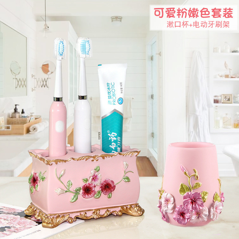 • 핑크 전동 칫솔 홀더 + 구강 세정제 컵