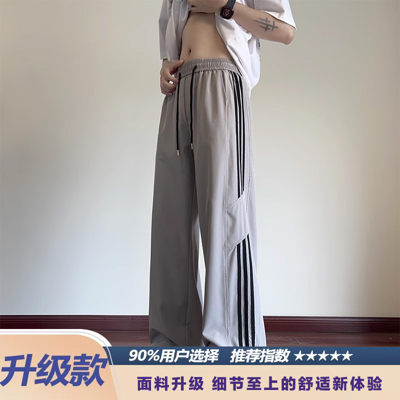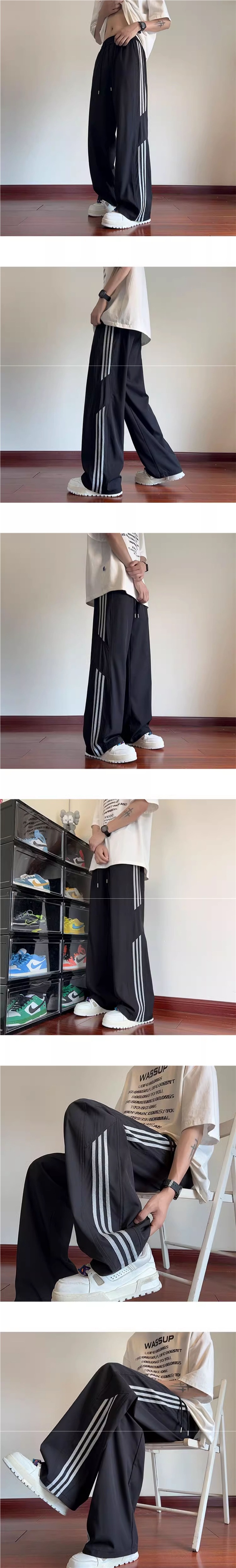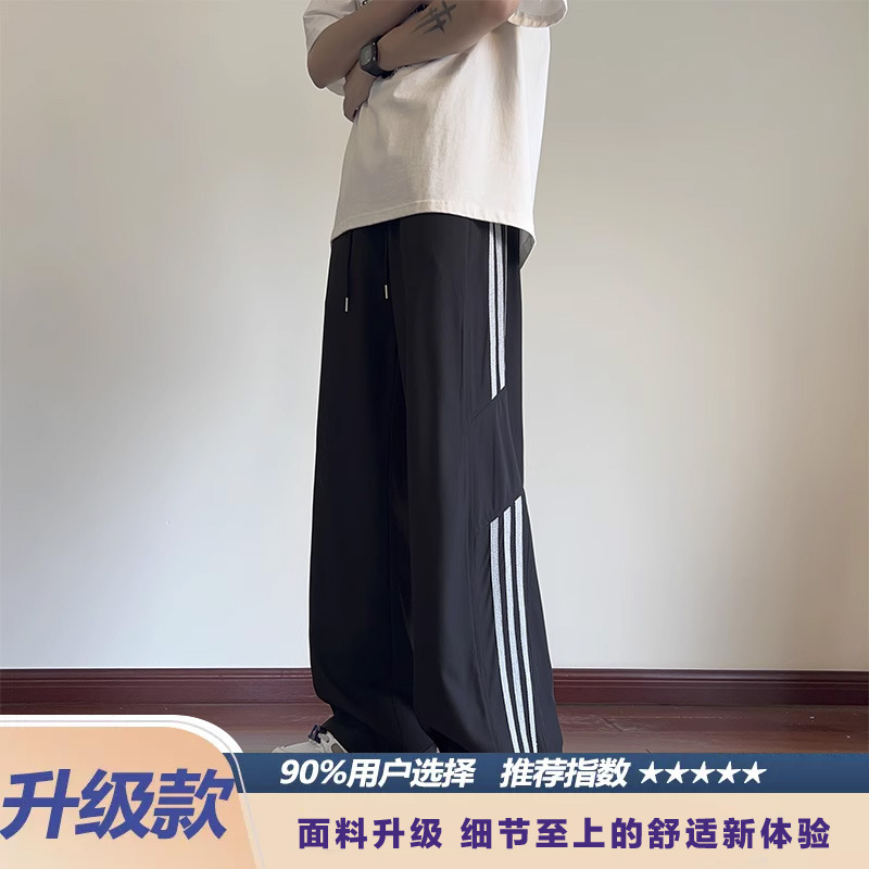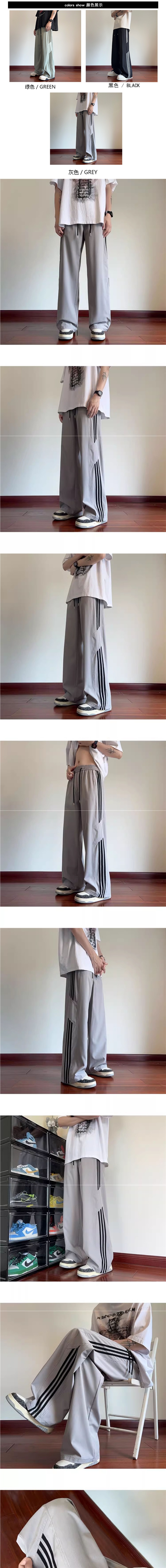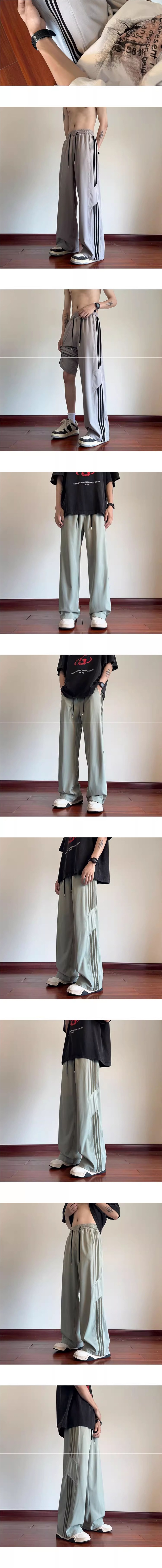 줄무늬 얼음 실크 바지 남자 여름 얇은 느슨한 직선 넓은 다리 바지 청소년 2025 새로운 캐주얼 도매스토어 가기