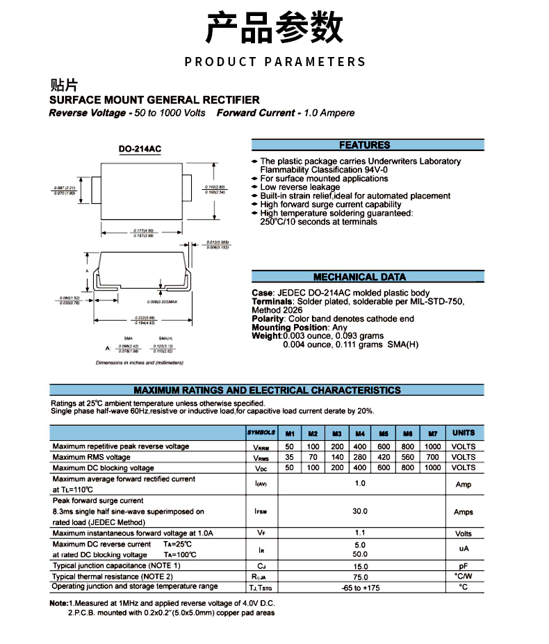 • 1N4001 패치 SMA 스크린 인쇄 M1(50개)