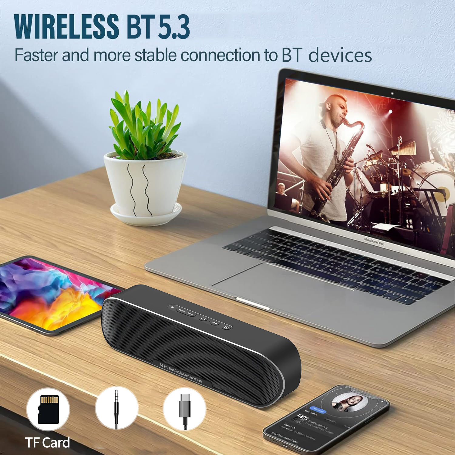 S9 블루투스 무선 오디오 카드 무거운 서브 우퍼 테이블 대용량 고성능 휴대용 야외 전문 TWS 스피커스토어 가기