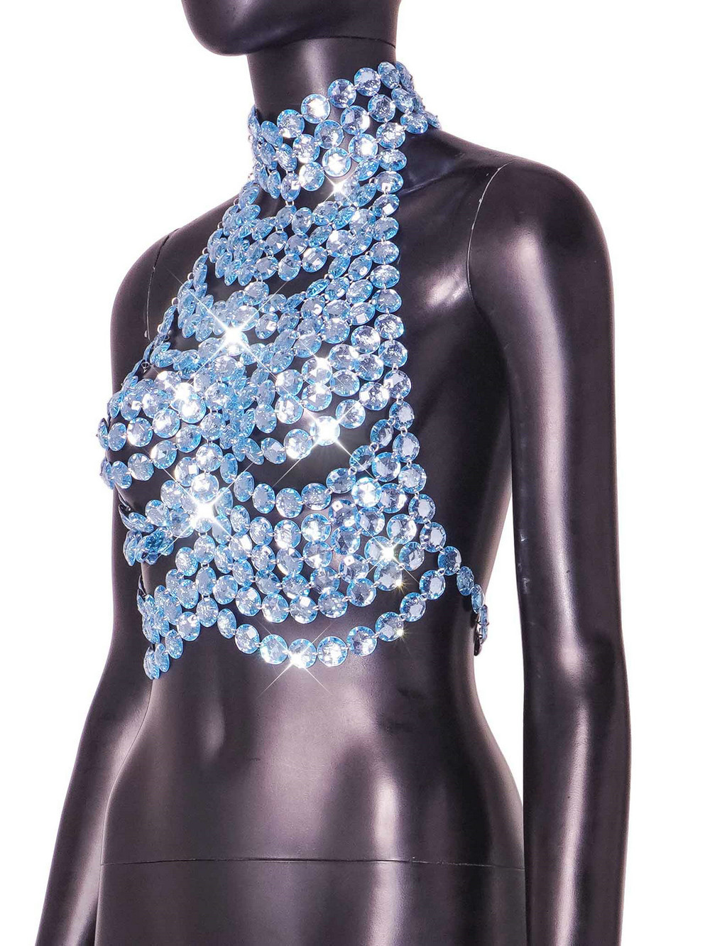 2025 유럽과 미국 국경 패션 여성의 새로운 섹시한 속이 빈 핫 걸 조끼 보석 크롭 탑 B22174스토어 가기