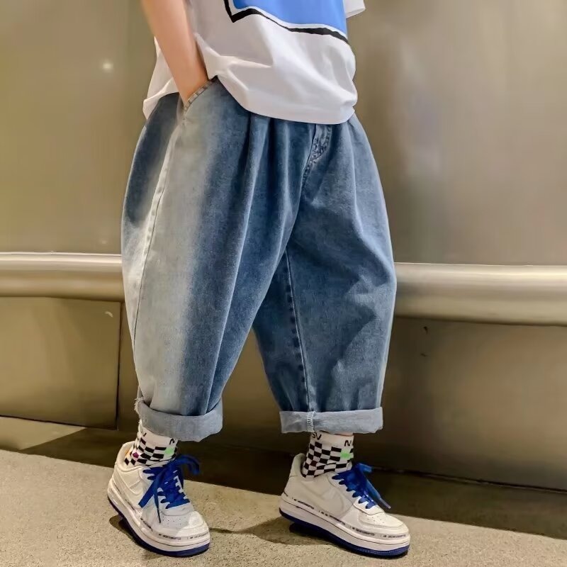 남학생 바지 한국 아동복 2025 어린이 잘 생긴 청바지 소년 거리 튀김 올매치 할란 팬츠 트렌디