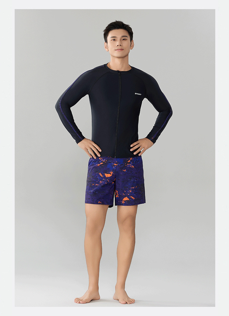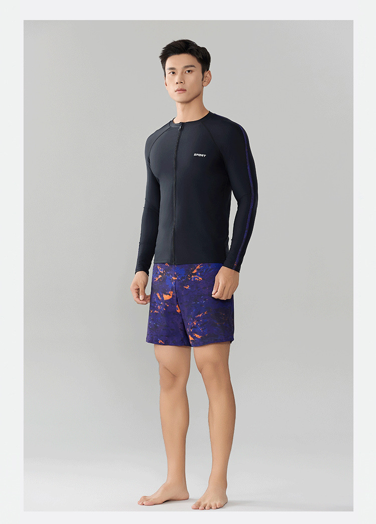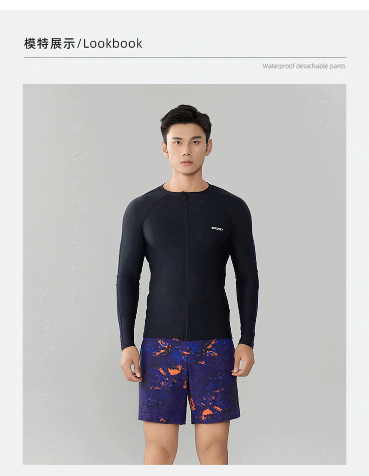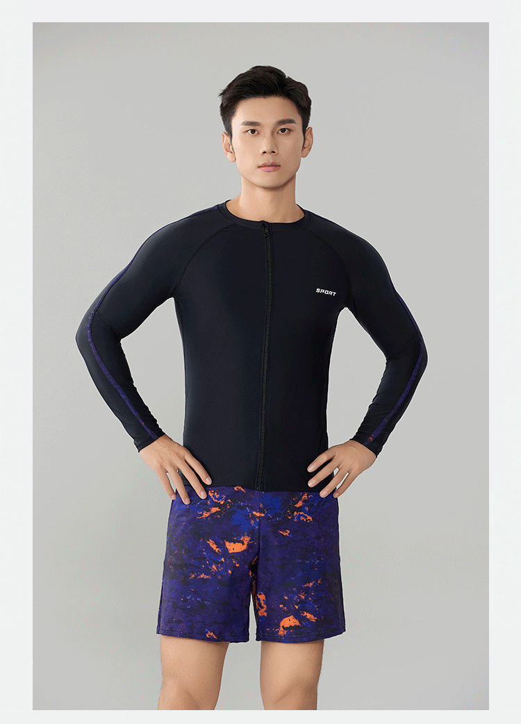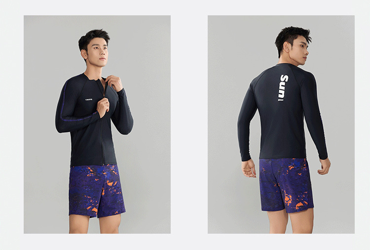 Trisass 새로운 남성 분할 수영복 긴팔 지퍼 스포츠 비치 선 스크린 쇼트 수트 뚱뚱한 플러스 사이즈