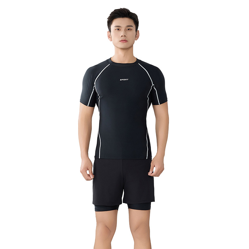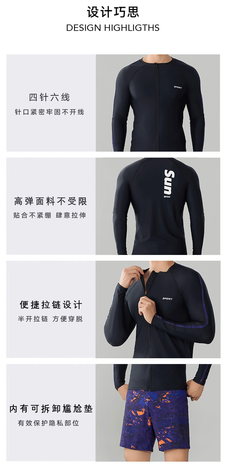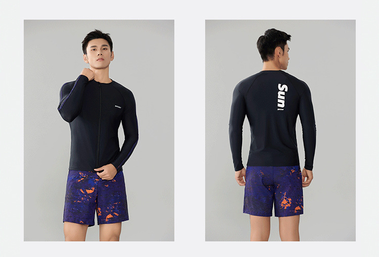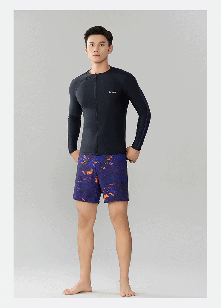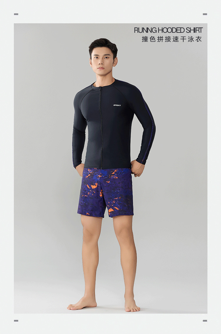 Trisass 새로운 남성 분할 수영복 긴팔 지퍼 스포츠 비치 선 스크린 쇼트 수트 뚱뚱한 플러스 사이즈