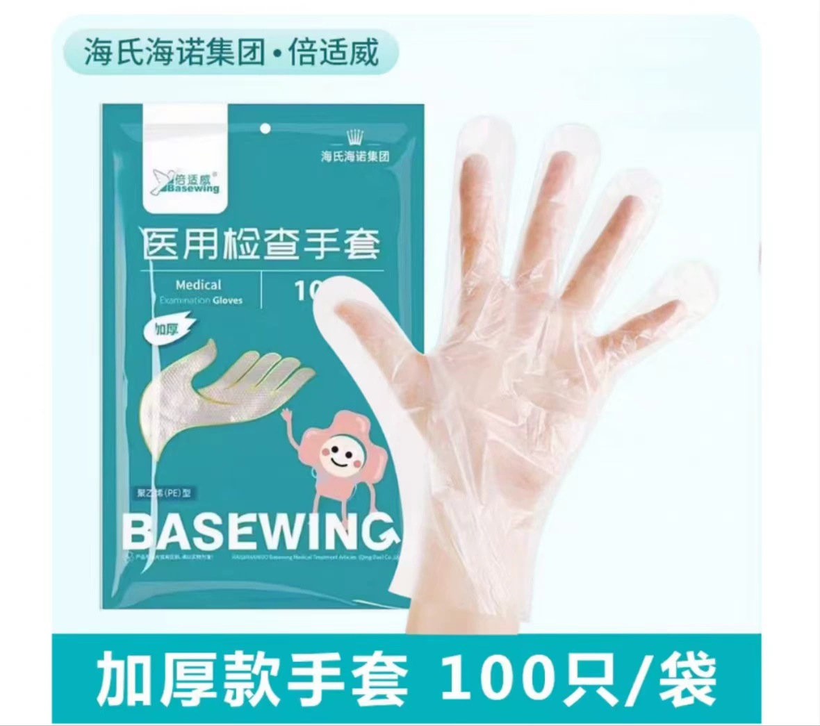 성인과 어린이를위한 하인드 일회용 건강 검진 장갑 두꺼운 분말이없는 투명한 PE 검사 필름 장갑스토어 가기