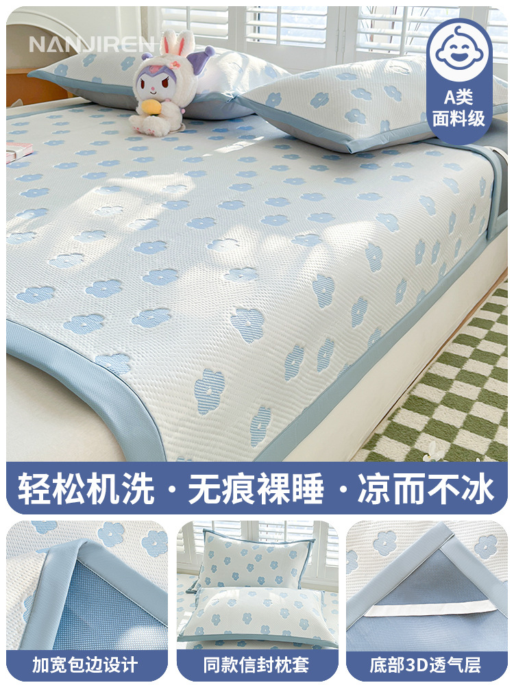 아이스 실크 매트 여름 대나무 매트 2025 새로운 양면 겨울과 여름 등나무 매트 이중 사용 학생 기숙사 단일 기계 빨스토어 가기