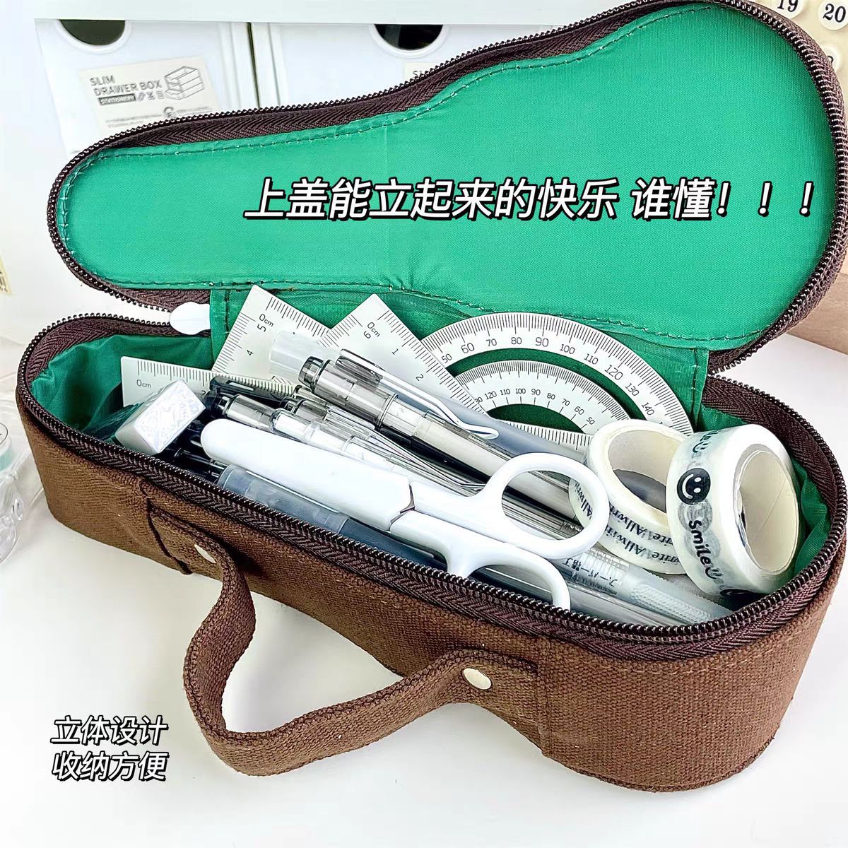 중학생 여학생을 위한 바이올린 필통, 심플하고 개성 있는 학생 문구류, 고급스럽고 대용량