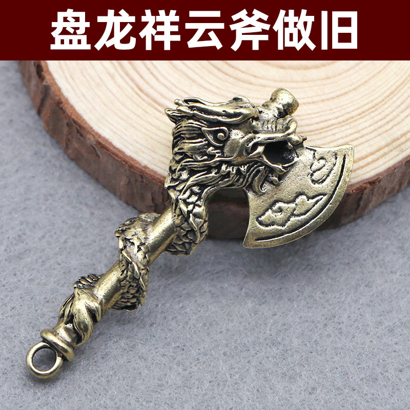 황동 레트로 용 도끼 자동차 키 펜던트 팬 롱 구리 샹윤 금속 키 체인 액세서리 작은 펜던트