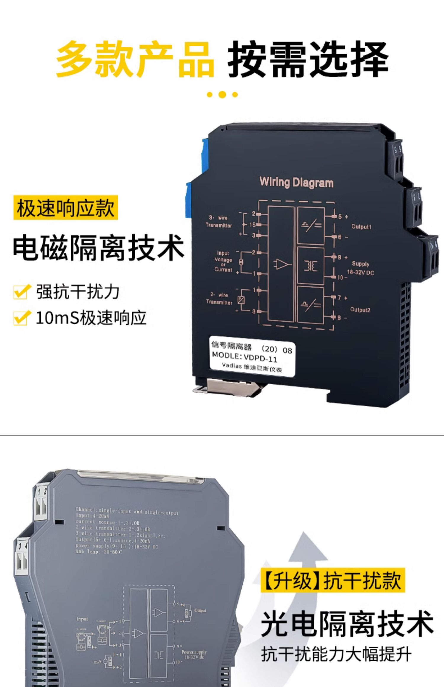 • [업그레이드된 간섭 방지 모델] 1개 및 2개 출력 4-20mA ~ 4-20mA