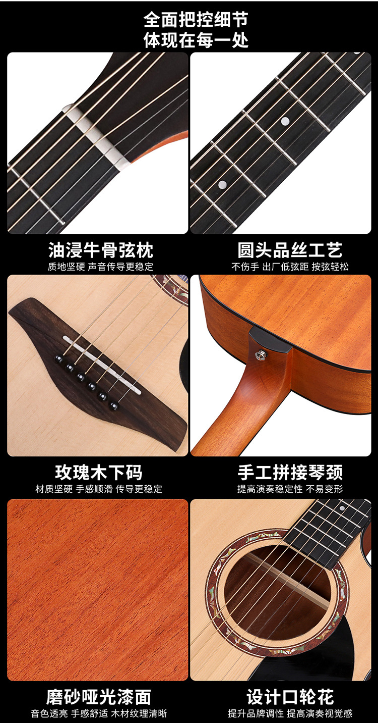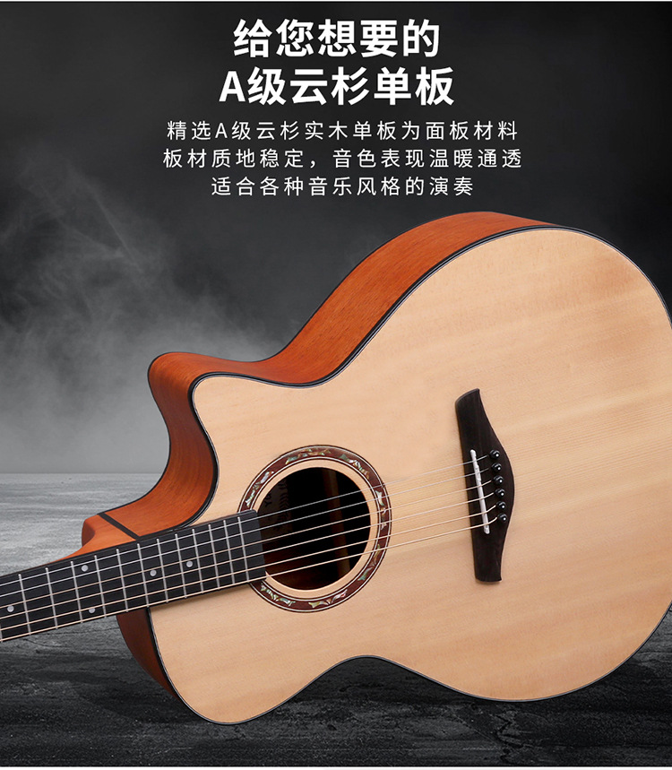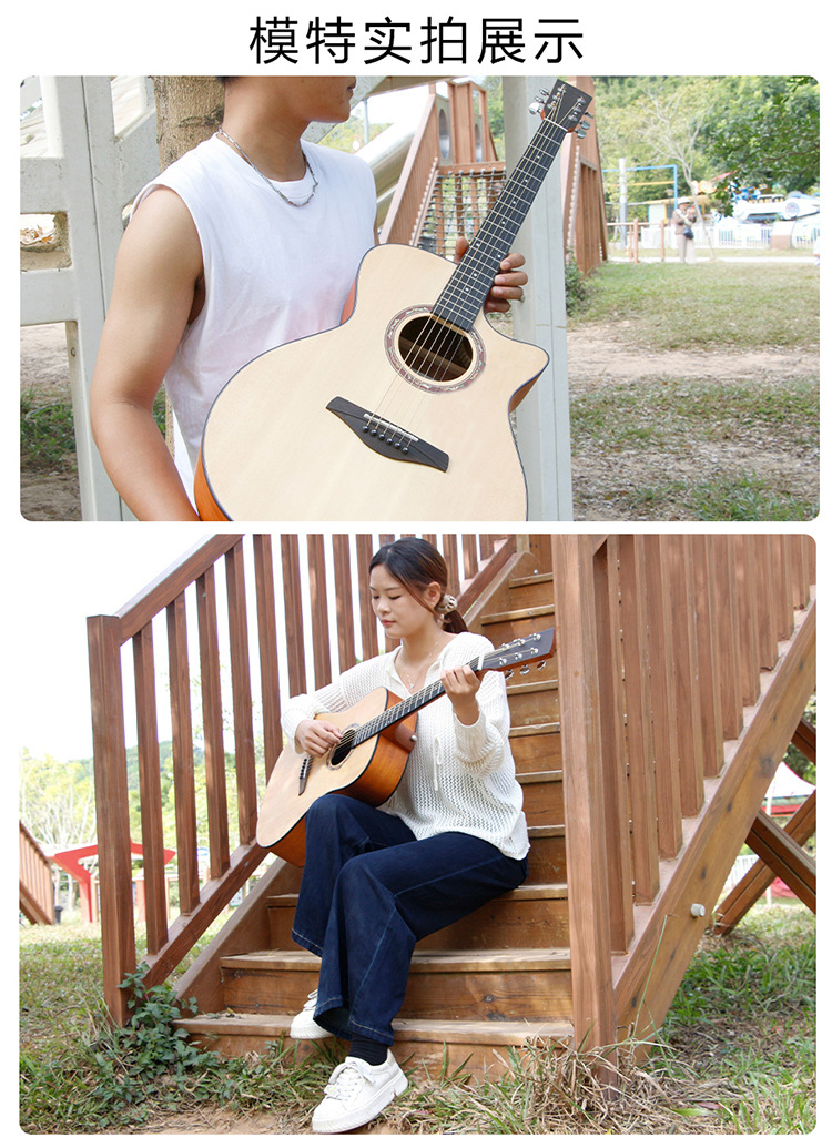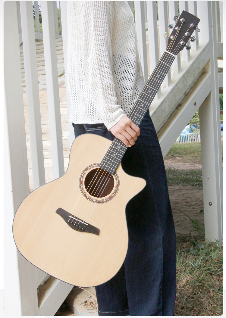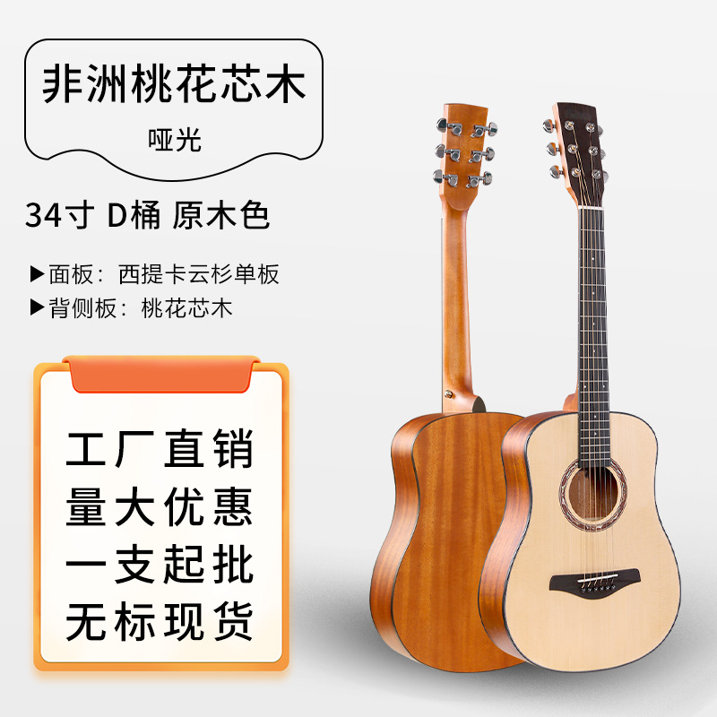 스프루스 티크목 단판 포크 기타, 연습용 어린이 입문용 휴대용 목재 기타 38inch스토어 가기