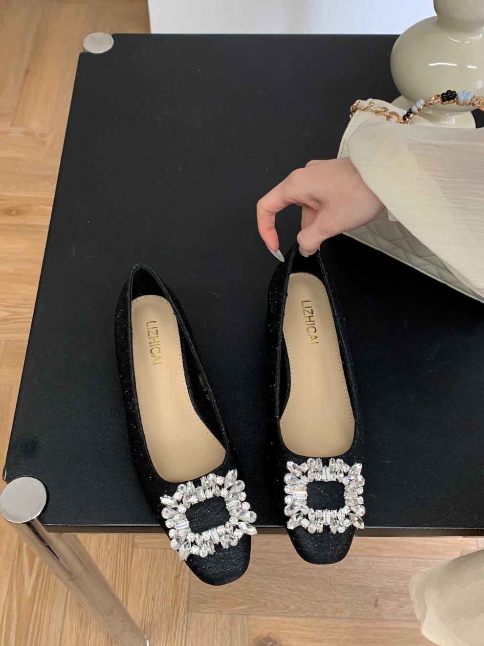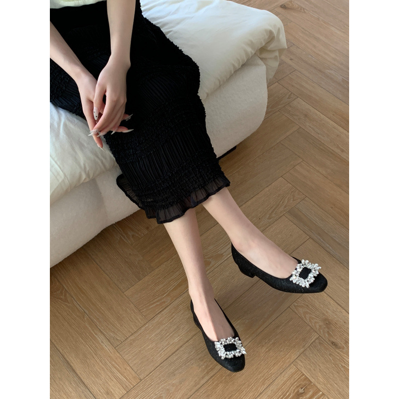 프랑스 하이 엔드 봄 새로운 우아한 라인스톤 두꺼운 힐 스퀘어 이브닝 브리즈 슈즈스토어 가기