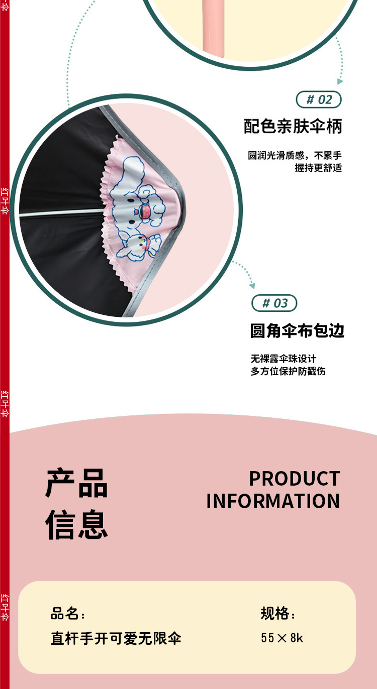 소년 소녀 학생을위한 안전 스트레이트 로드 우산 어린이 만화 선 스크린 UV 태양 우산 재고 도매 우산