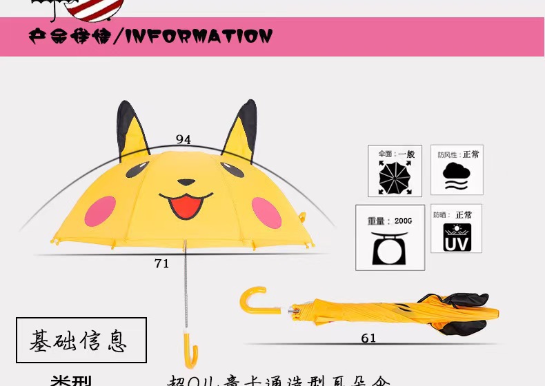 재고 있음: 슈퍼스타일리쉬한 어린이용 우산, 귀여운 동물귀 우산, 자동 개폐식 개성있는 만화 우산, 어린이용 차양 우산